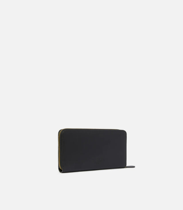 Zip-around wallet in soft silky leather, personalized with Love Birds Diamond Cut plaque on leather base. The interior is lined in polycotton and is divided into four compartments, one closed with a zip and two with spaces for credit cards.