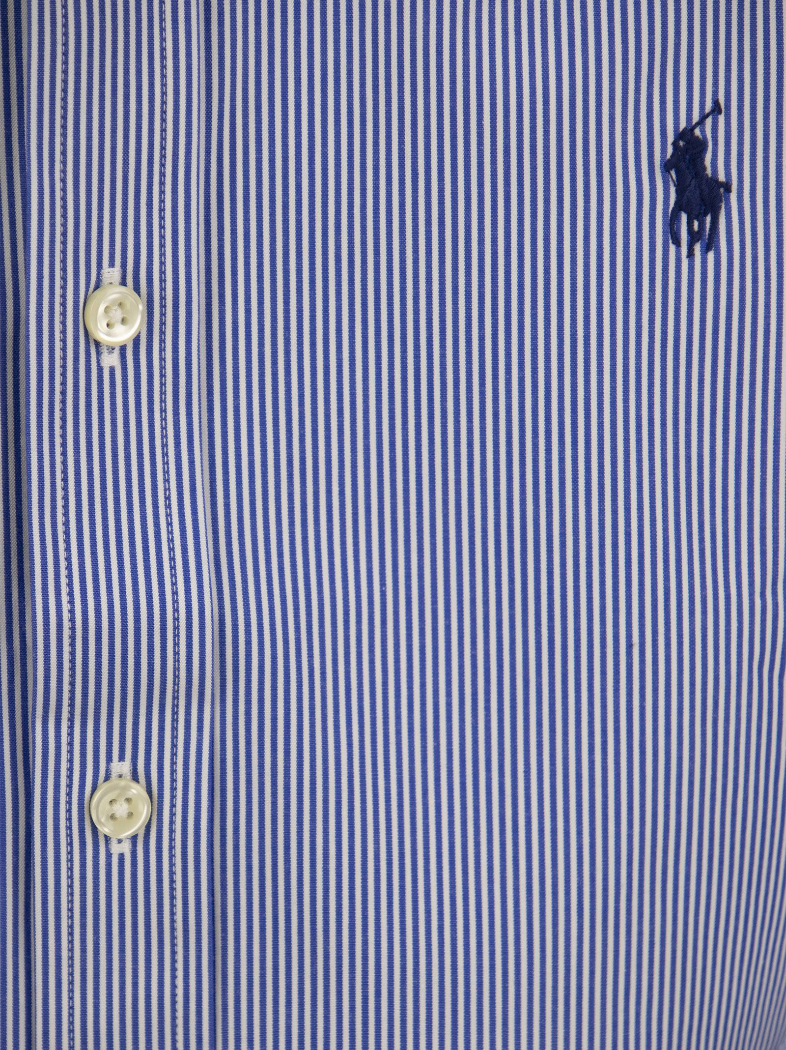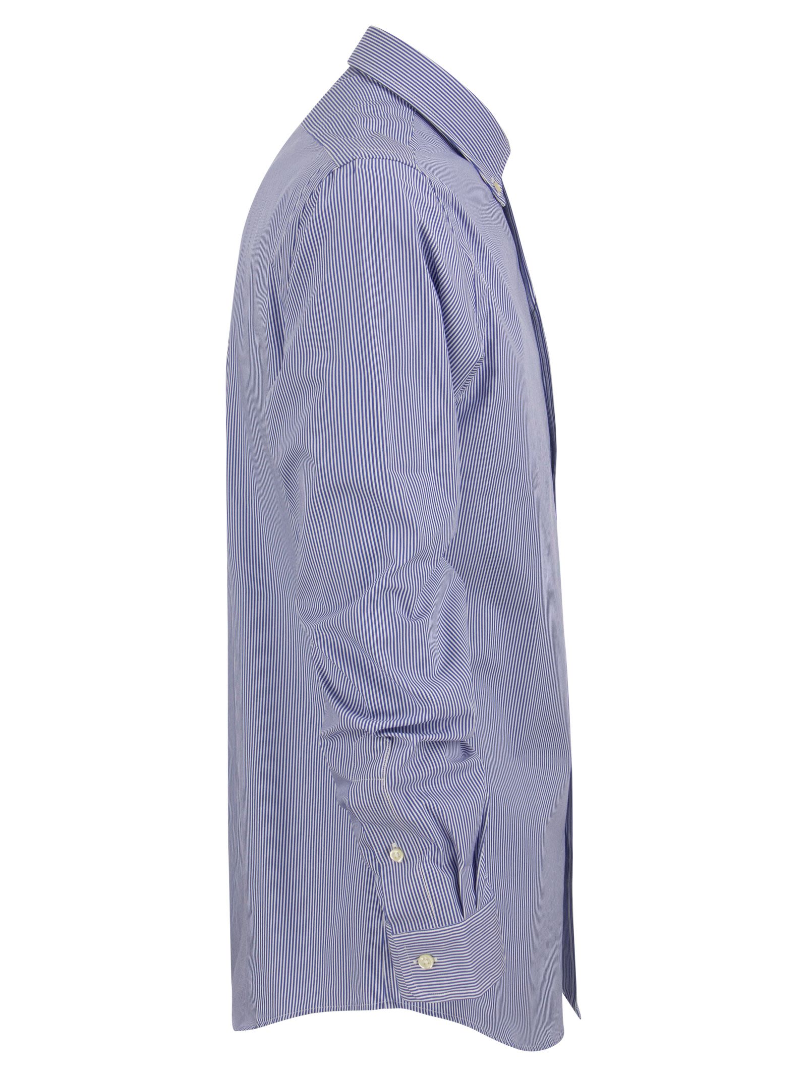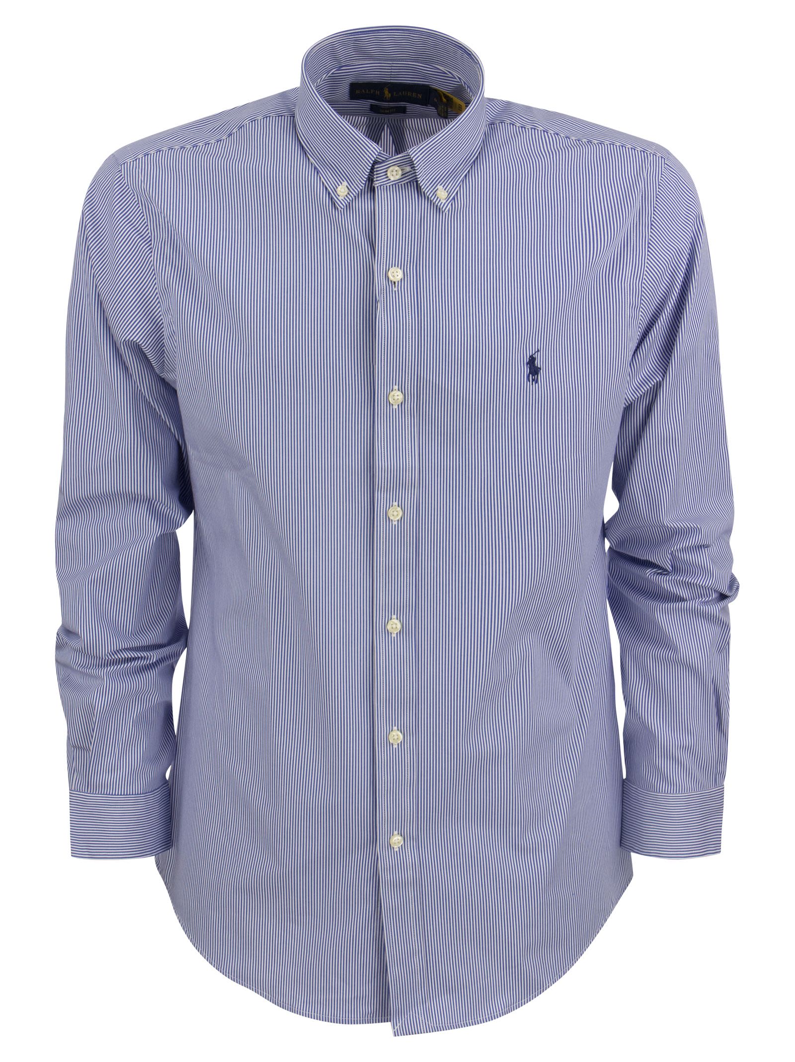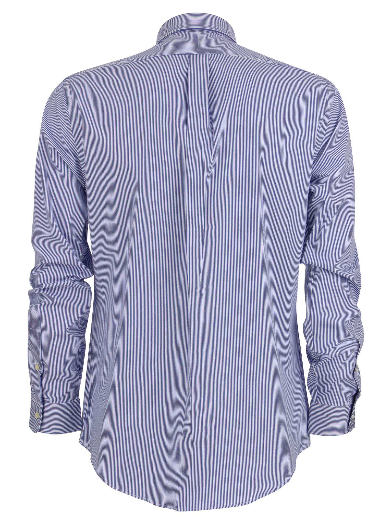 The poplin of this shirt, made of soft, breathable cotton with high elasticity, guarantees incomparable comfort. - Pointed button-down collar. Button-down collar - Long sleeves with buttoned cuffs - Split back yoke with cinched pleats for a comfortable fit and greater freedom of movement - Exclusive embroidered pony on left chest side - Slim Fit DESIGNER ID: 710832480 007