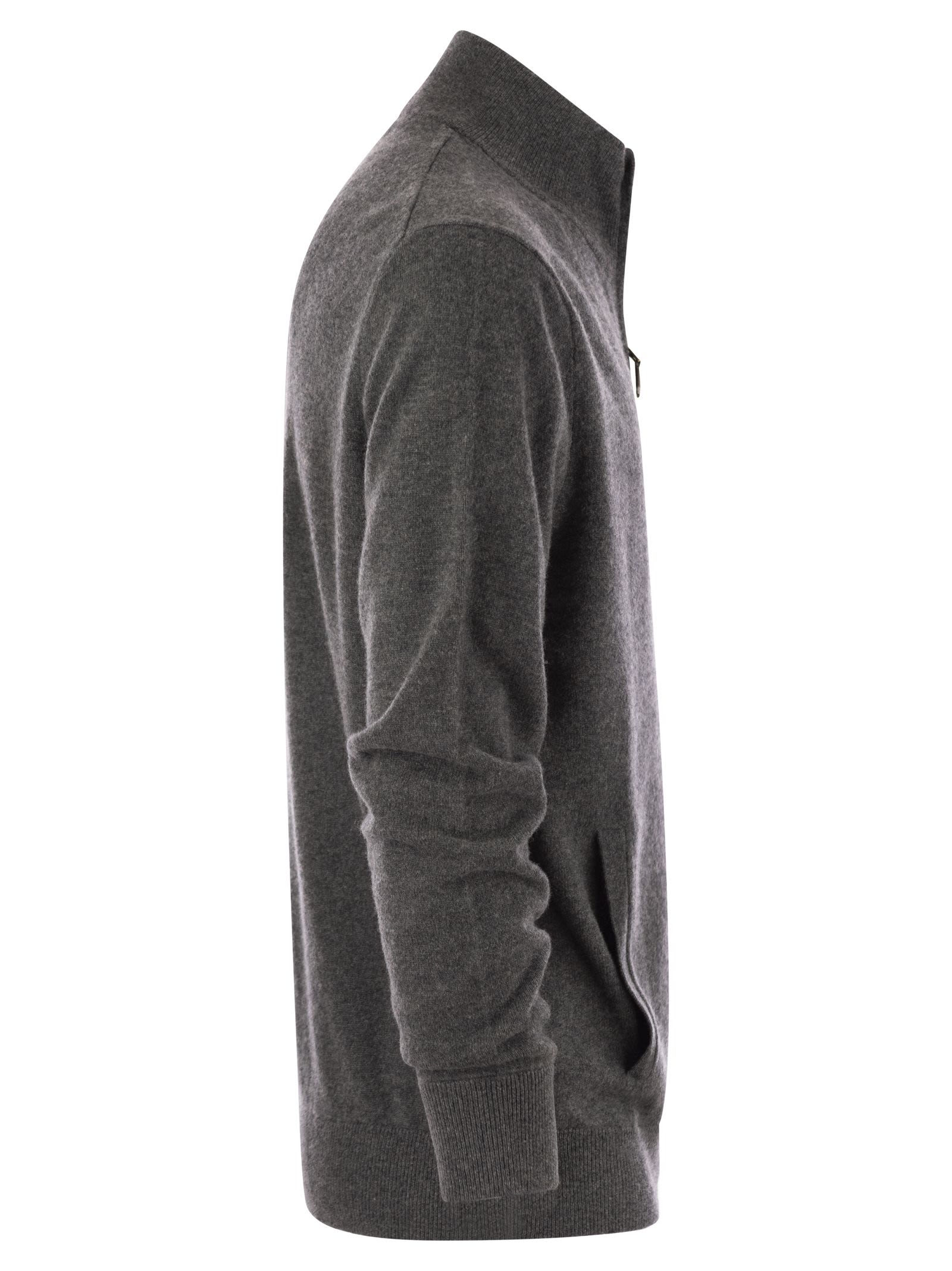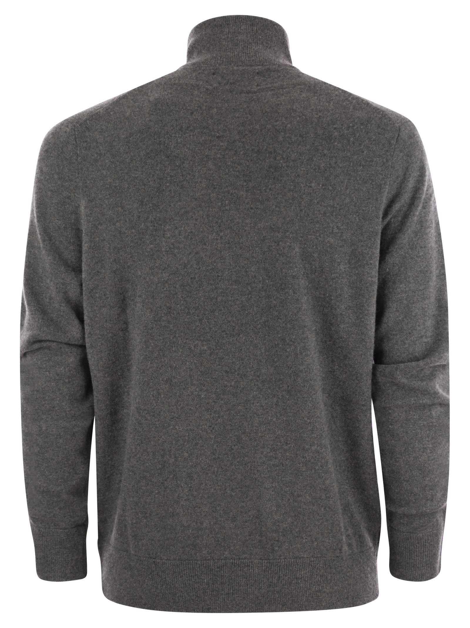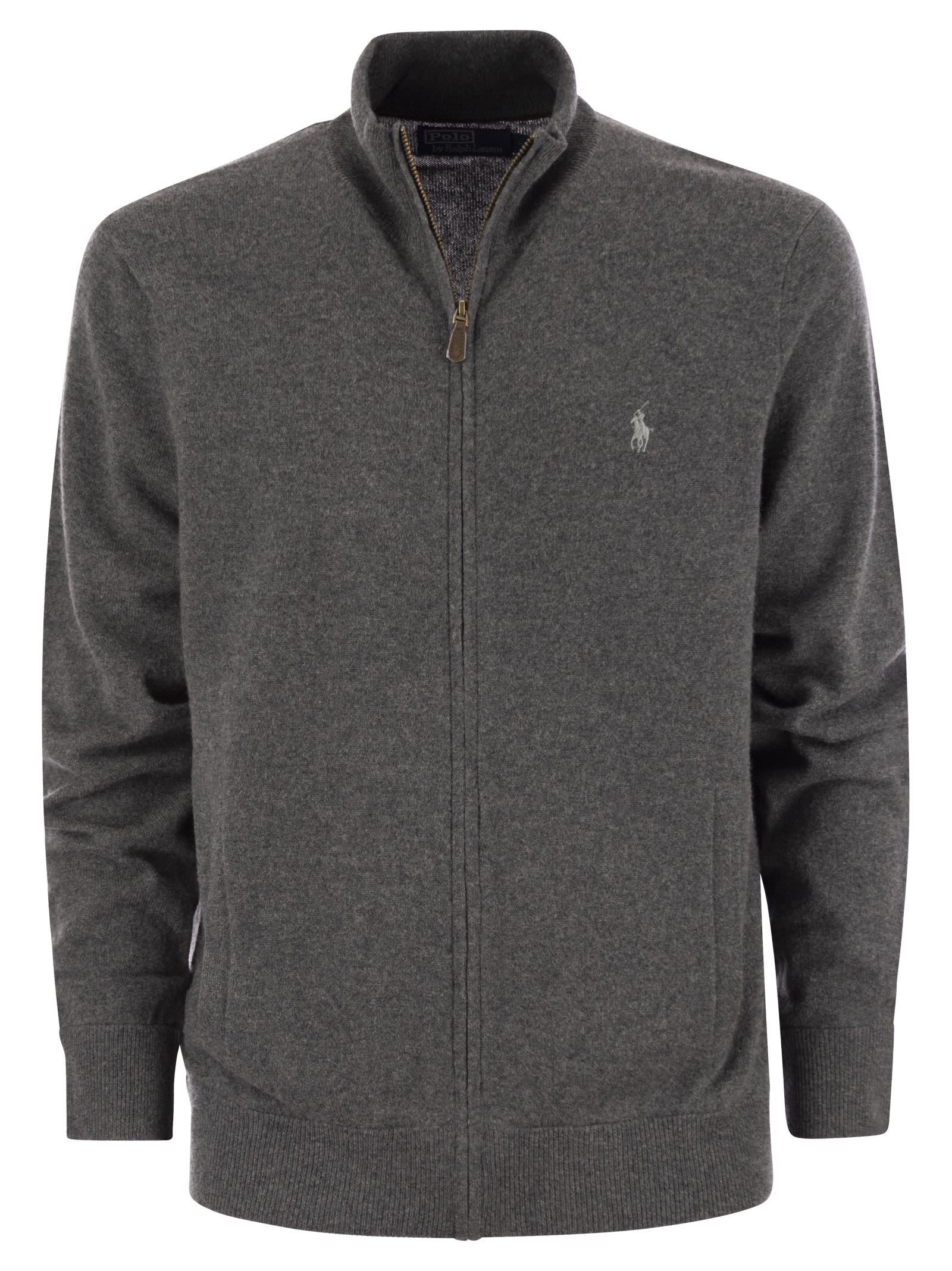 Fine Italian wool and an exclusive embroidered pony embellish this zip-up sweater. - Ribbed mock neckline - Eco-friendly suede trim on the inside of the nape of the neck - Zip fastening with suede slider - Long sleeves with ribbed cuffs - Two welt pockets at the front waist - Ribbed hem - Exclusive embroidered pony on the left chest side DESIGNER ID: 710876719 002