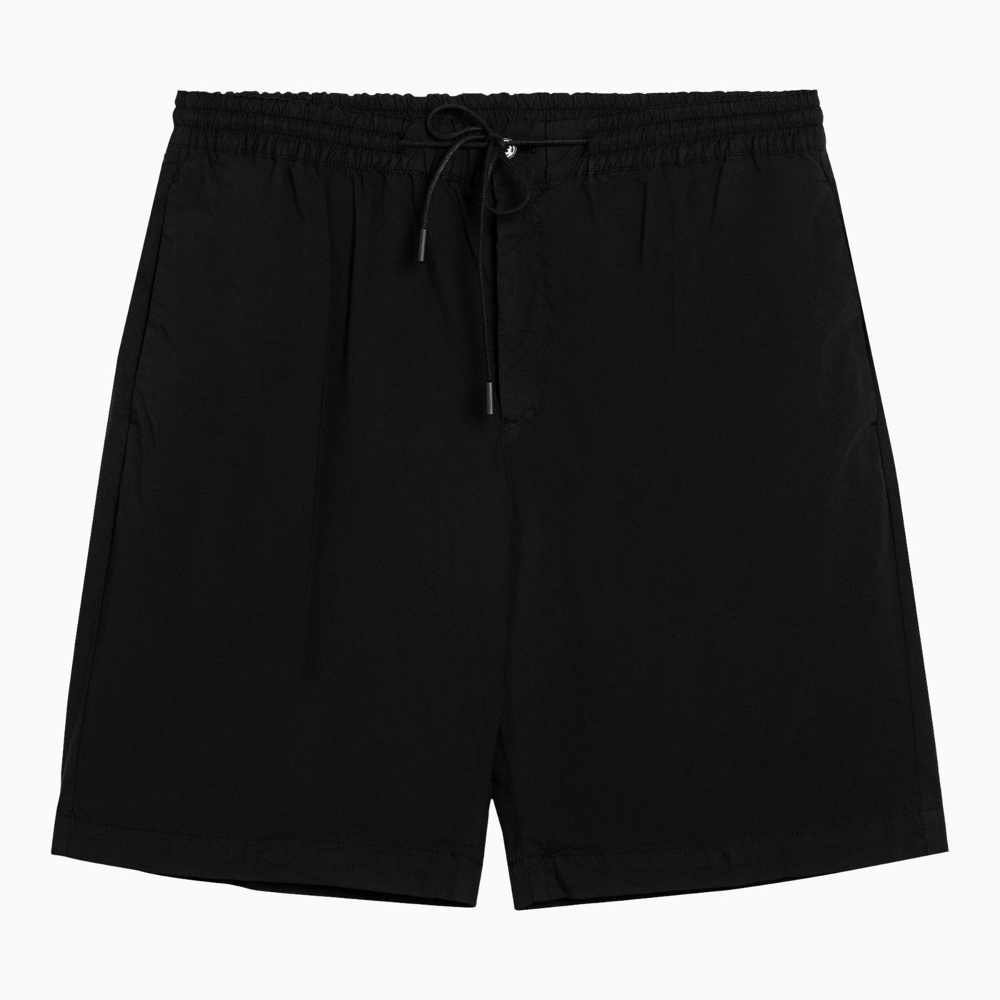 Black cotton-blend Bermuda shorts by PT Torino featuring an elasticated waistband with drawstring, front zip and button fastening, two side welt pockets and two back welt pockets.