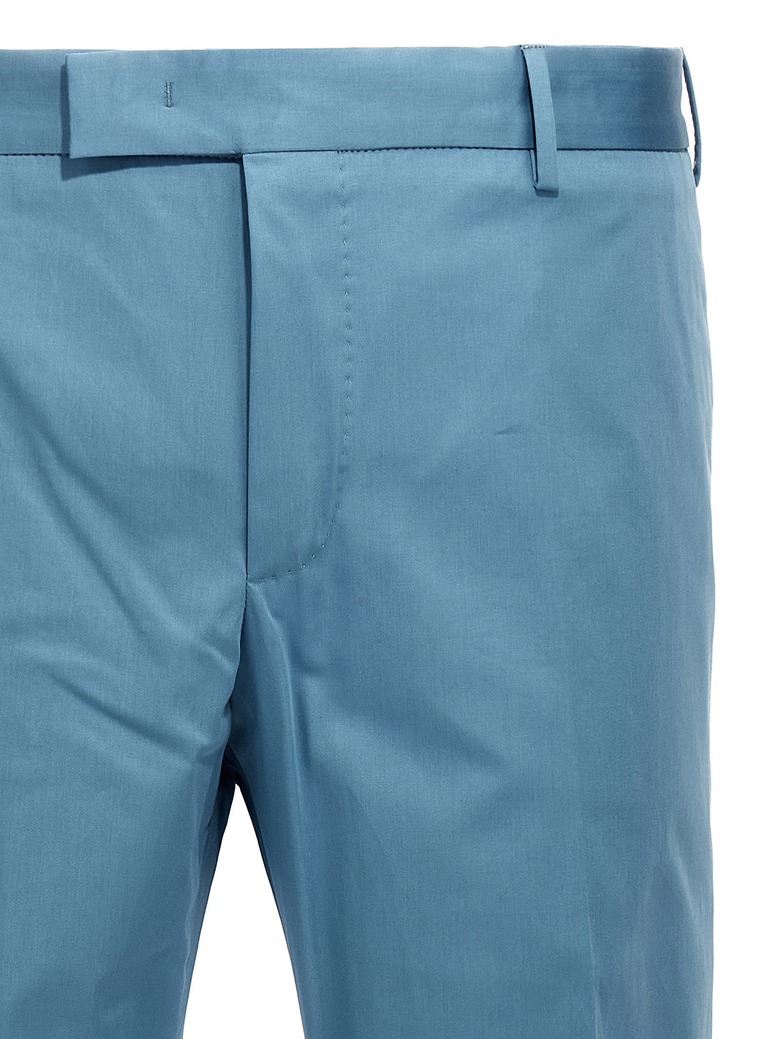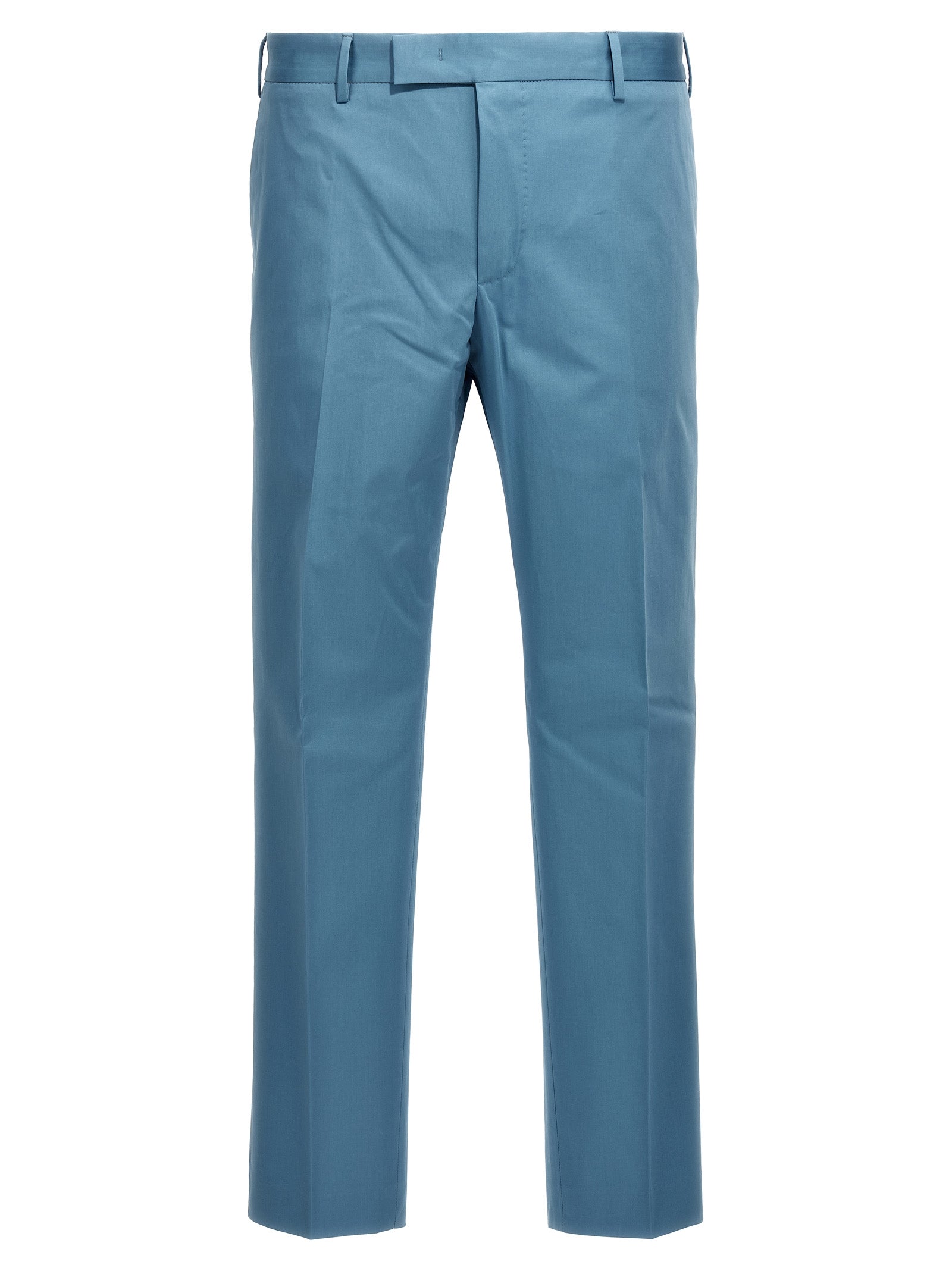 'Dieci' stretch cotton pants, hook and button zip closure, pockets, leg with stretched crease.