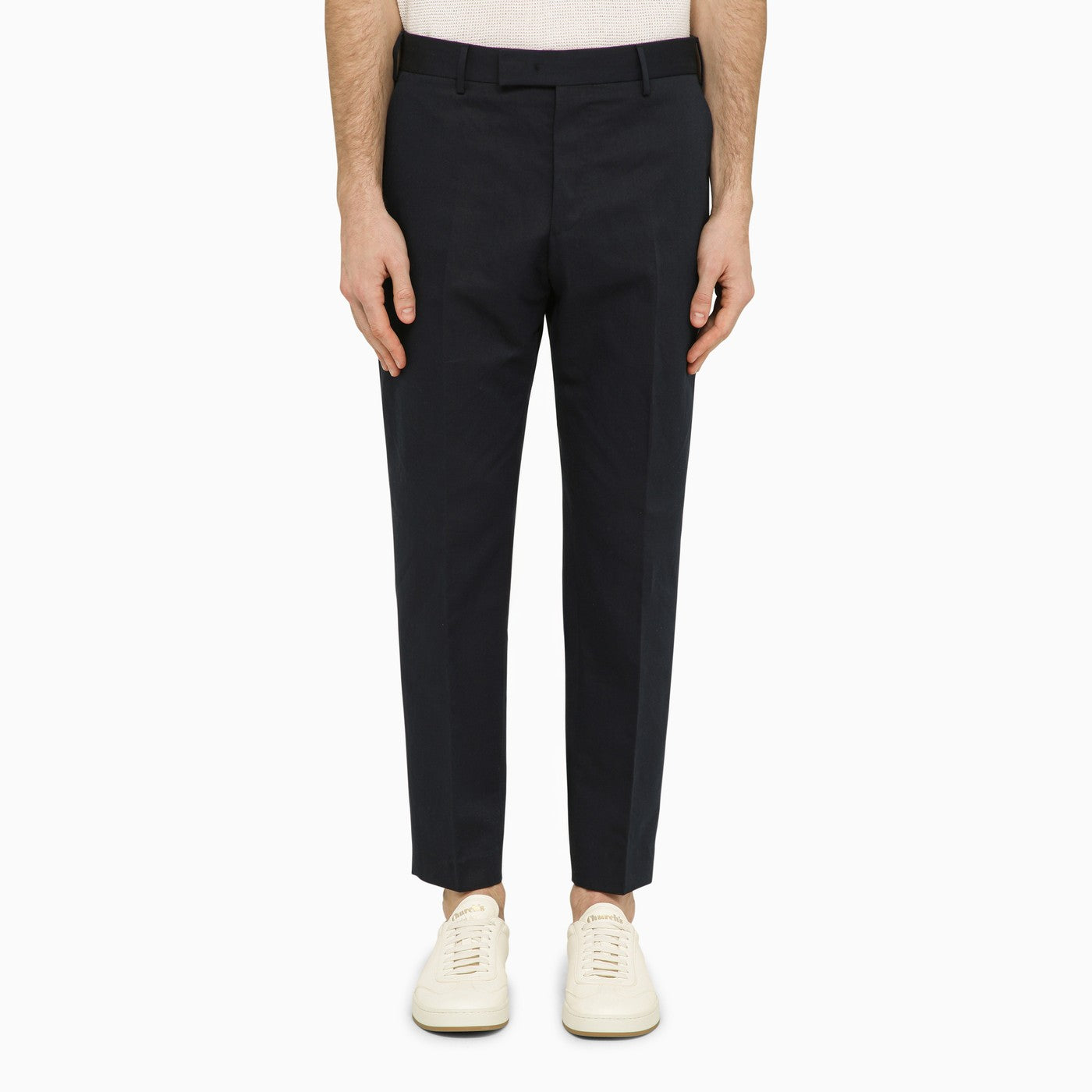 Pt Torino Navy Blue Slim Trousers In Cotton And Linen