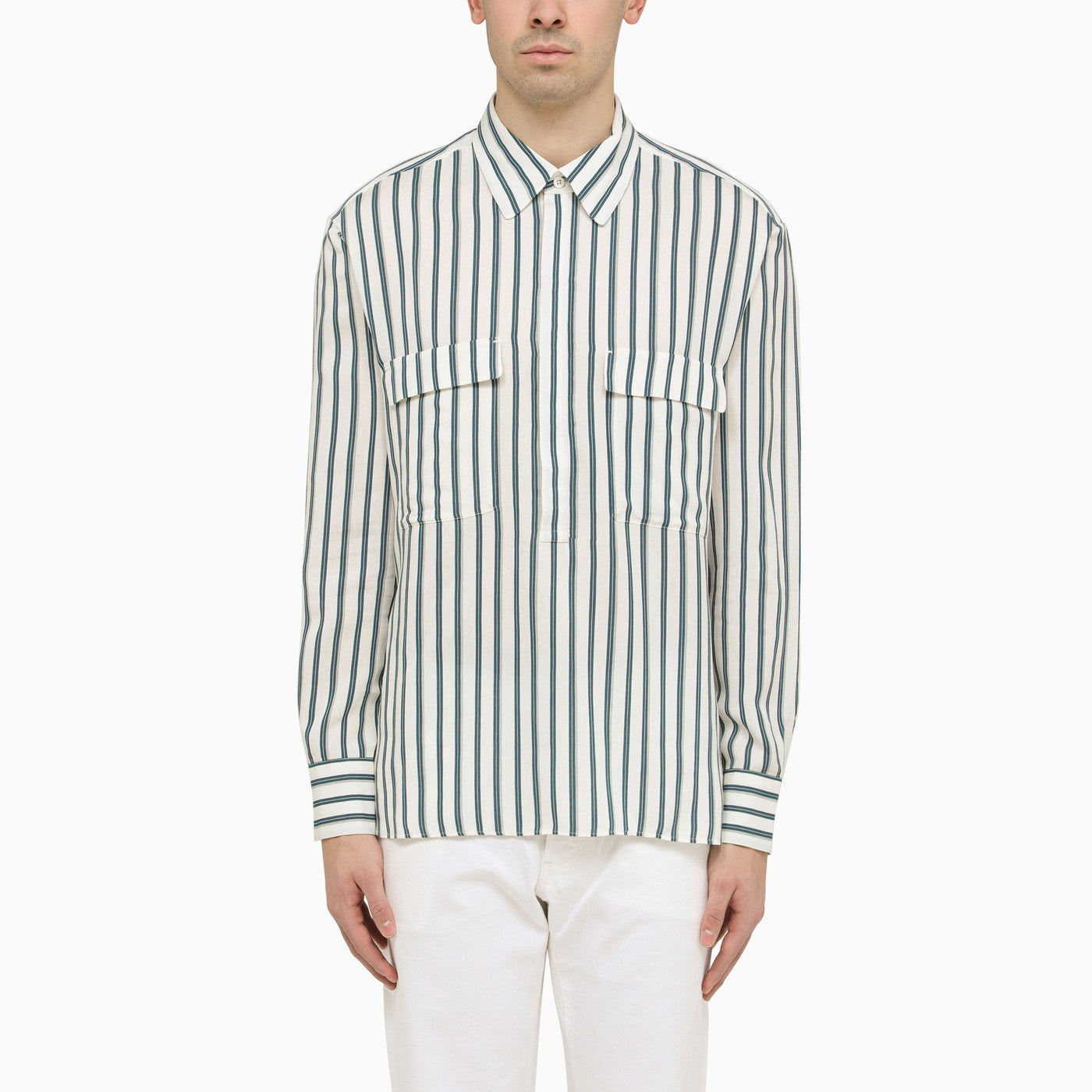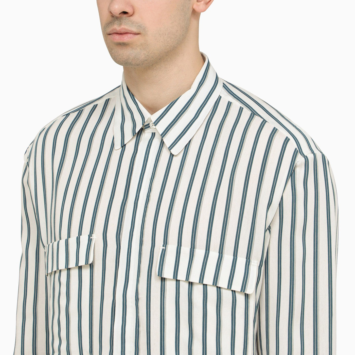 White and teal striped silk blend shirt by PT Torino featuring long buttoned sleeves, a concealed front button fastening and two patch flap pockets on the chest.