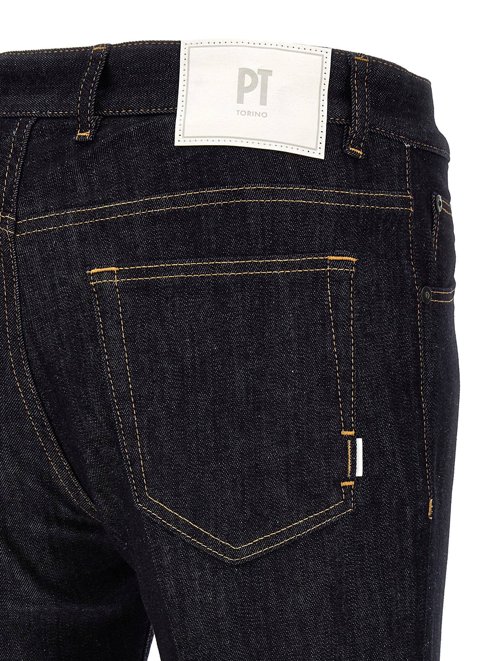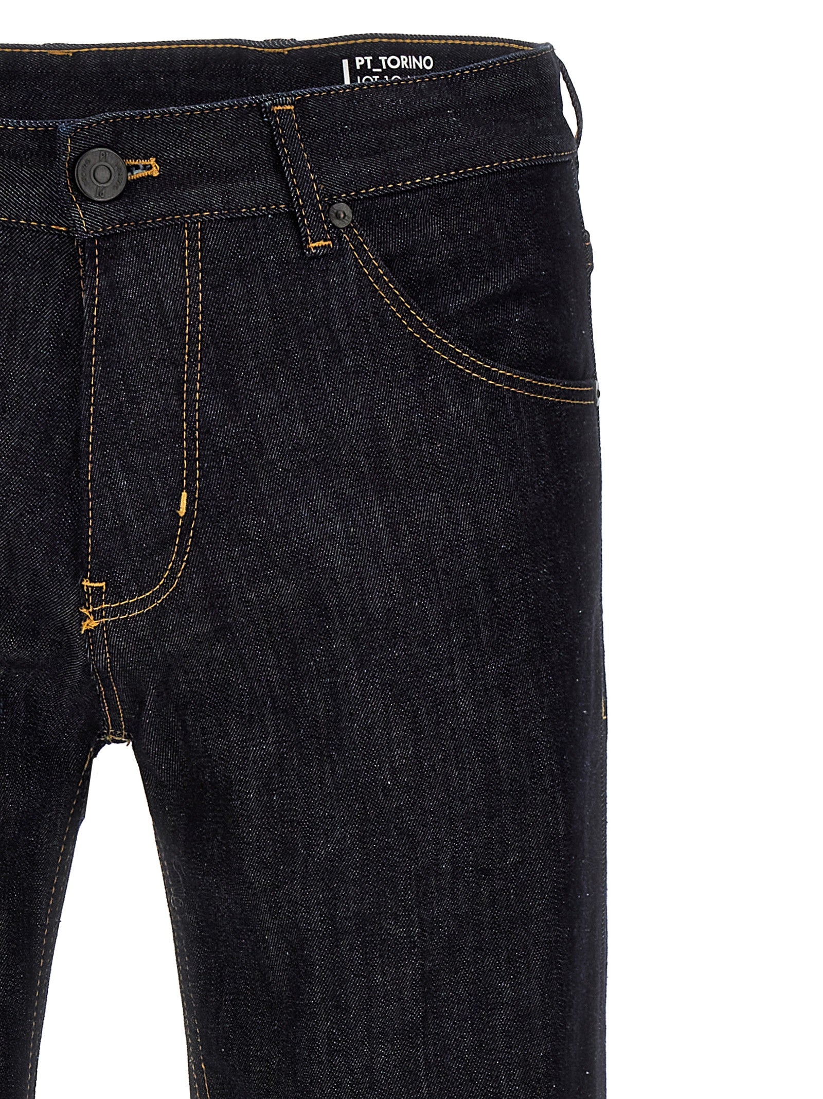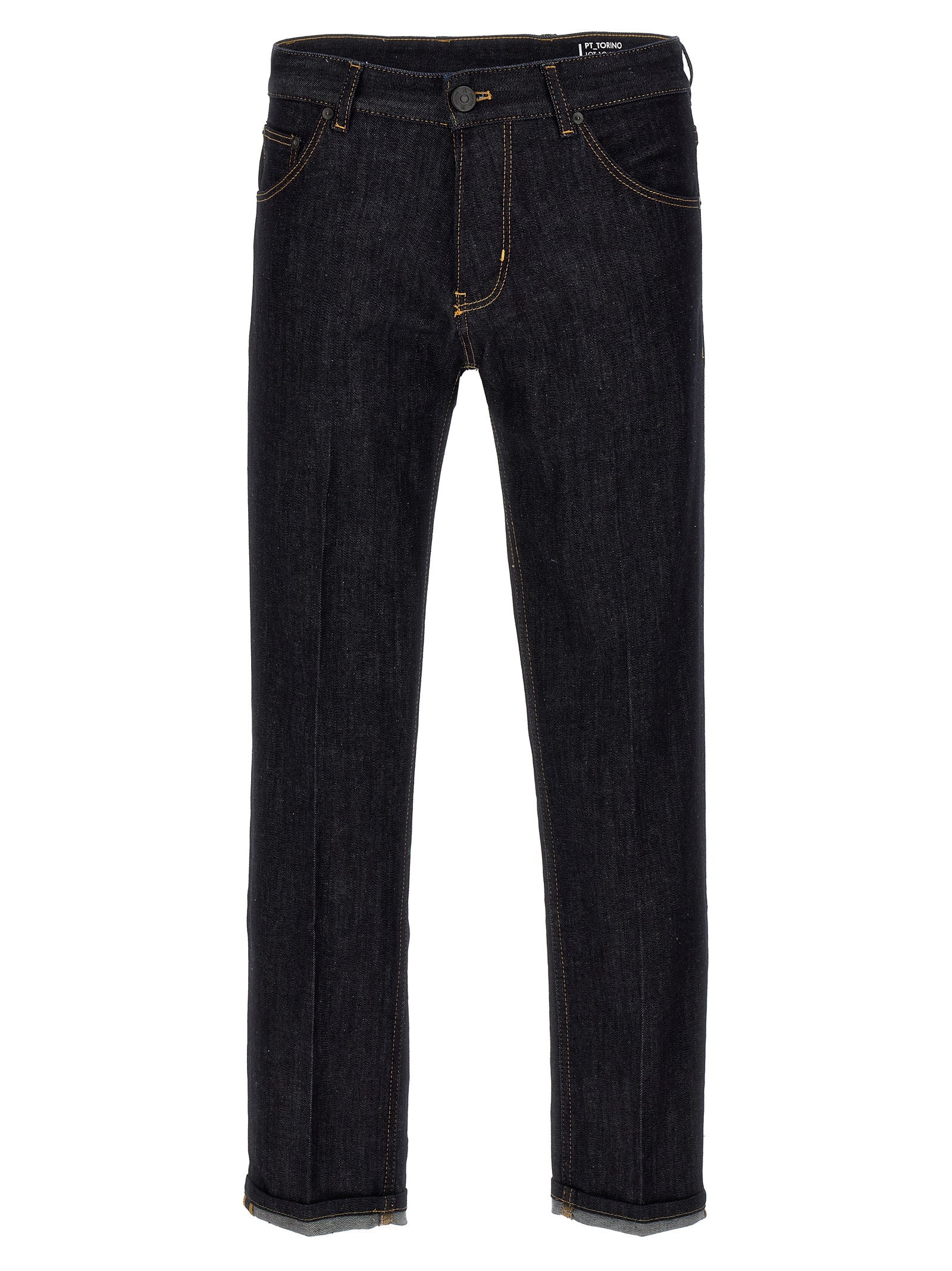 'Reggae' stretch cotton denim jeans with straight leg with central crease, regular waist with button closure.