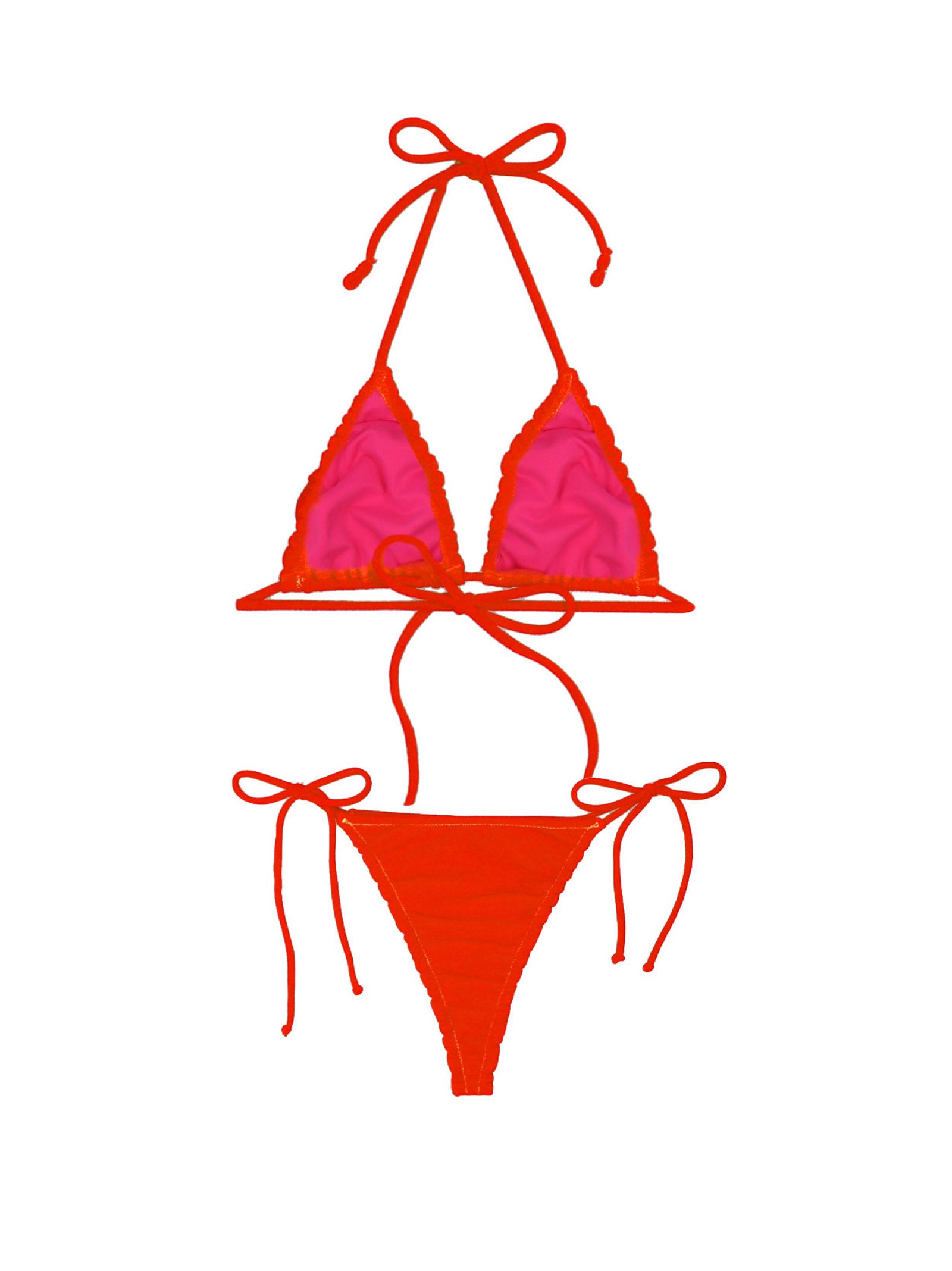 Concetta' beach towel-style fabric bikini with triangle top and high waist bottoms with laces.