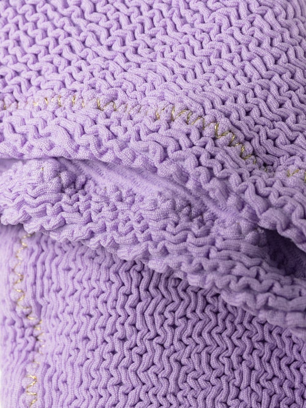 Ginny bikini set from REINA OLGA featuring lilac purple, bandeau style, square neck, sleeveless and classic bottoms. Be mindful to try on swimwear over your own garments..