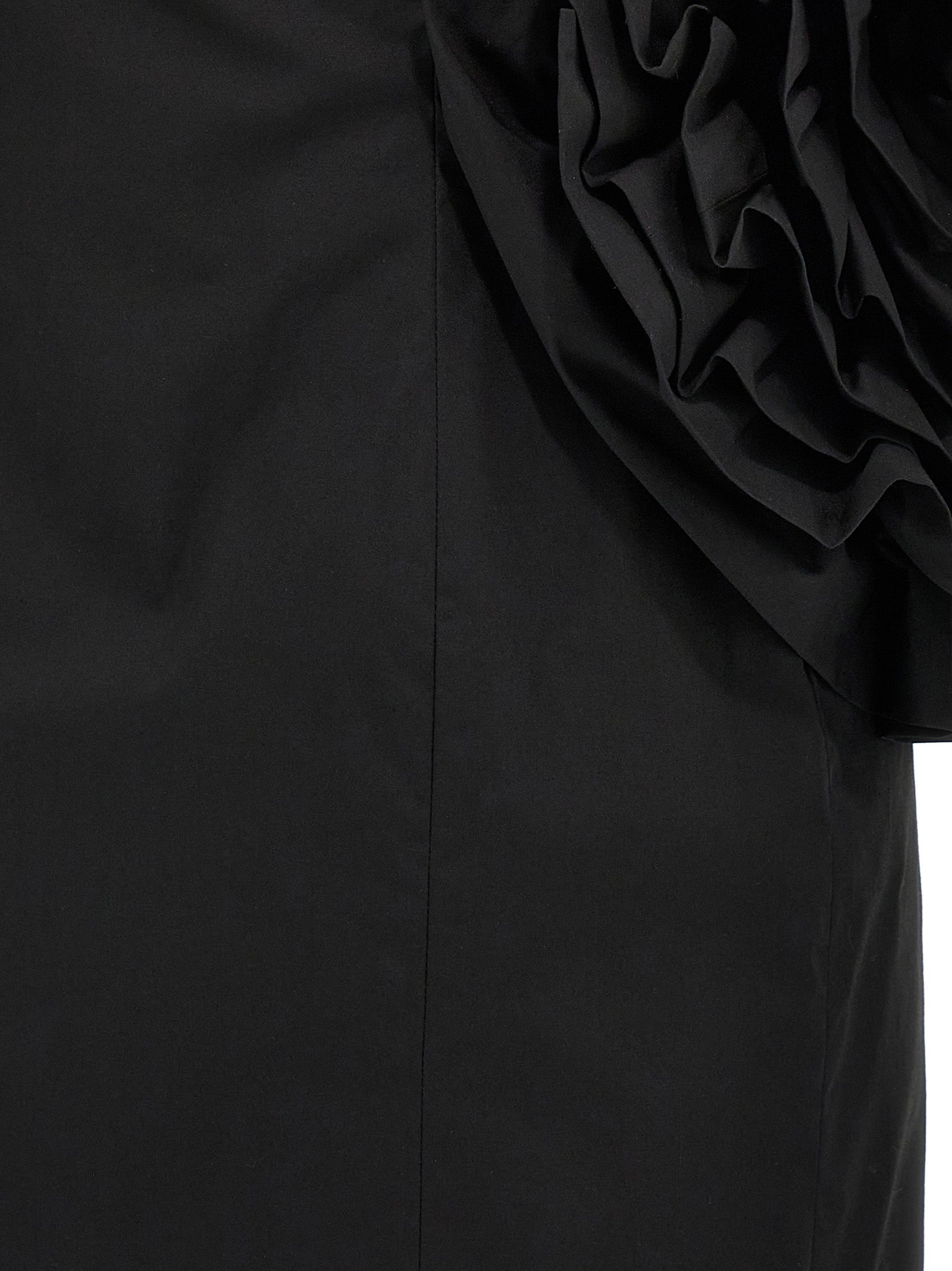 'Big Flower Mini' dress in stretch cotton with maxi 3D flower application on the front, off-the-shoulder model with silicone inner band, side zip closure.