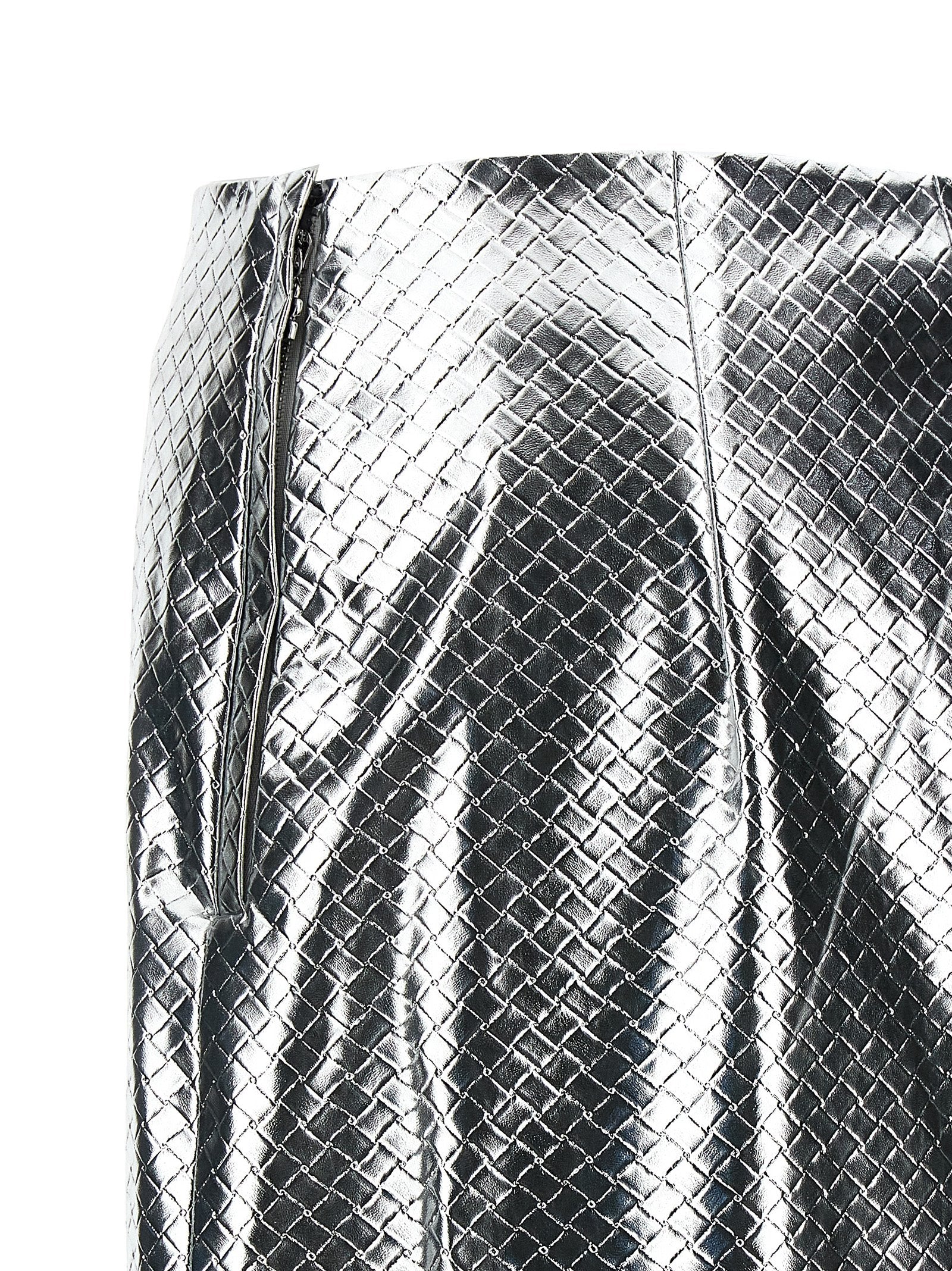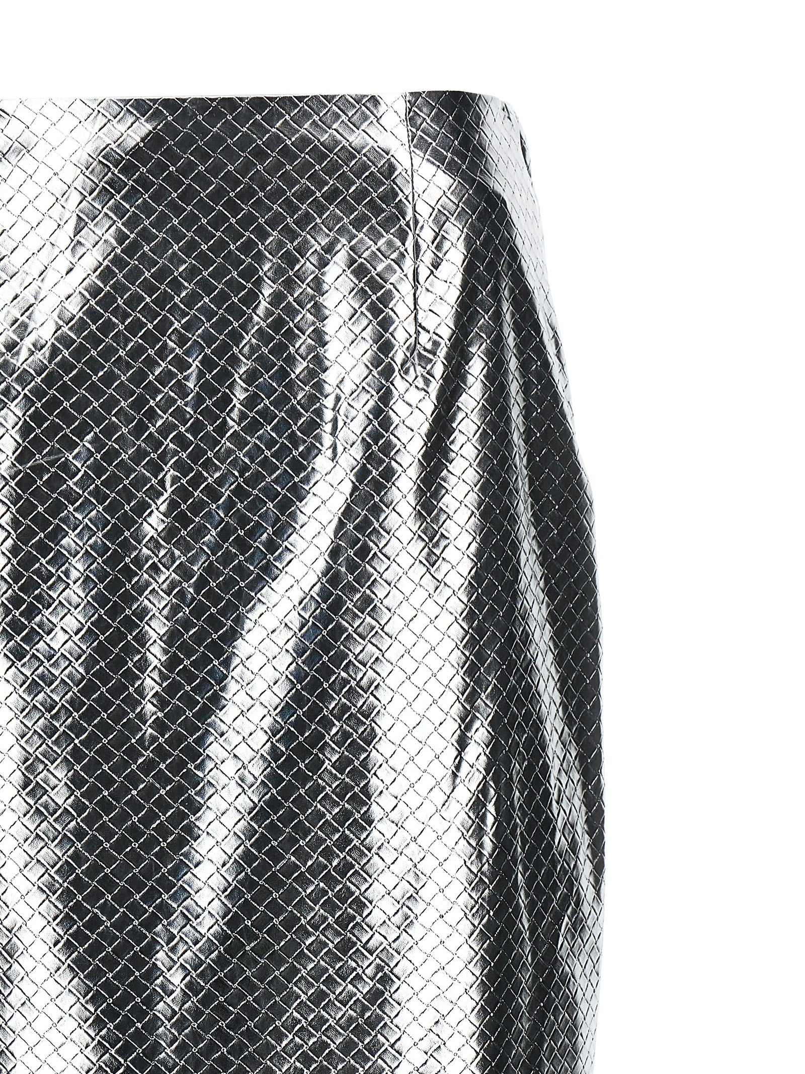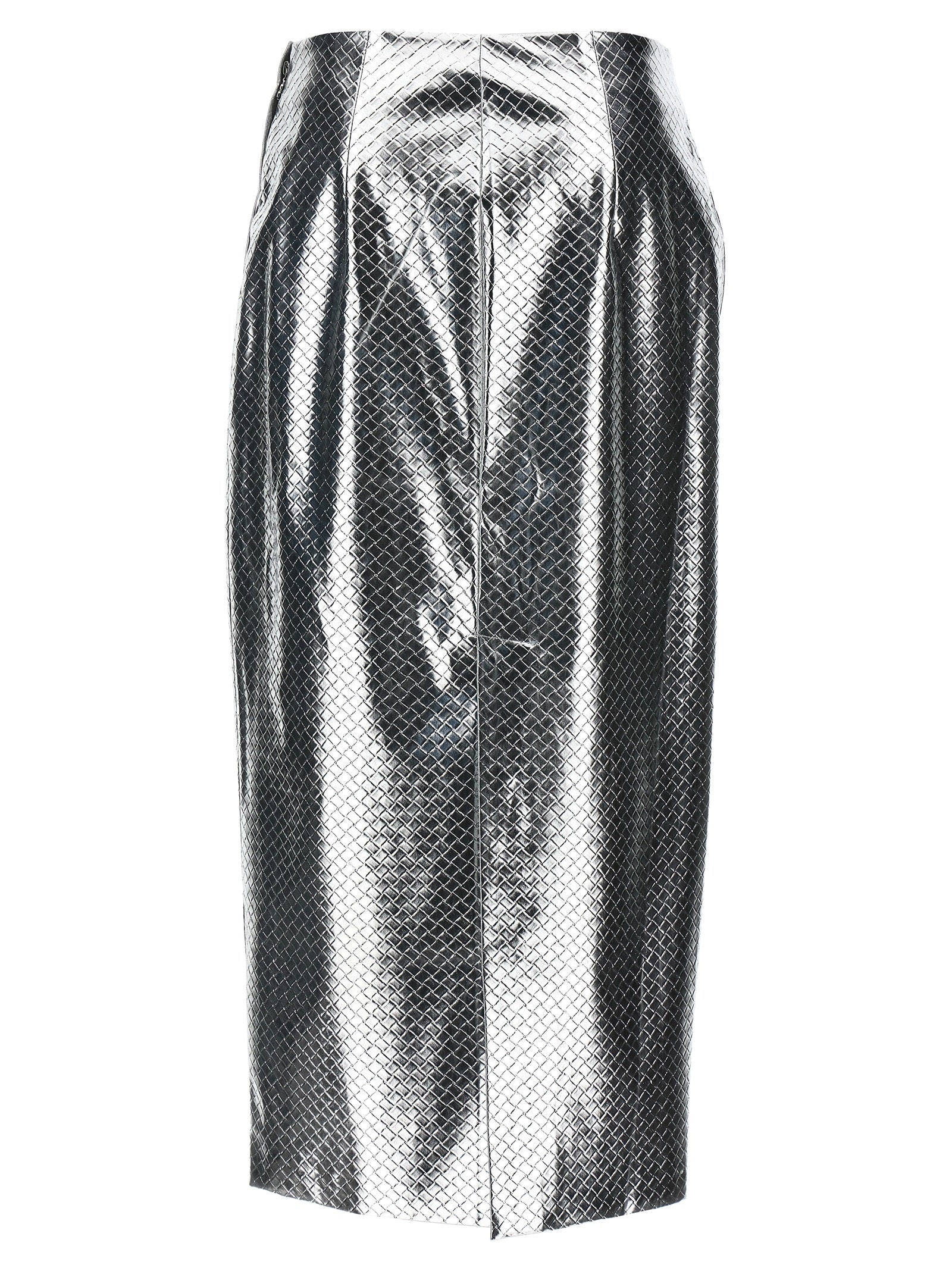 'Braided Pencil' skirt in woven leather-effect fabric, high waist model, side zip closure, back split. SUSTAINABLE: Product made from recycled polyester.