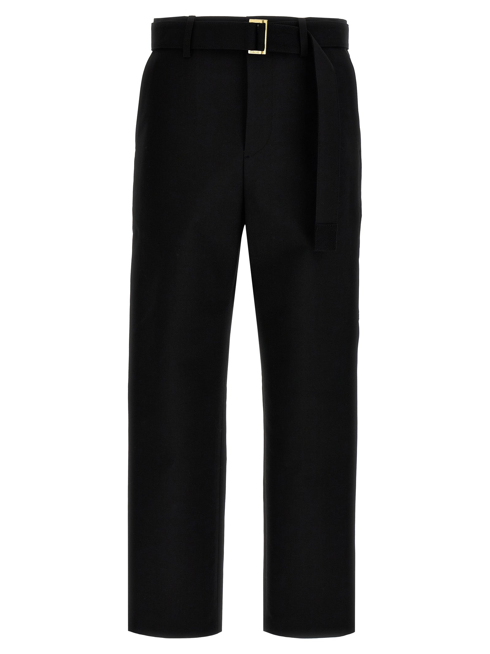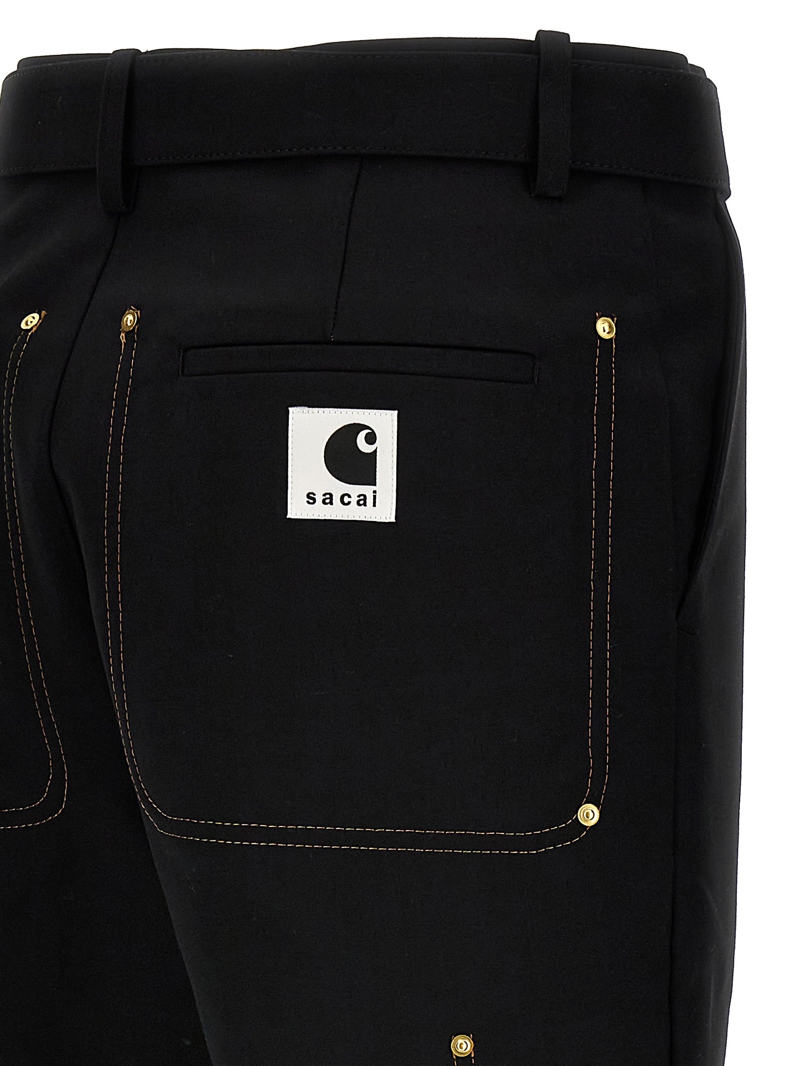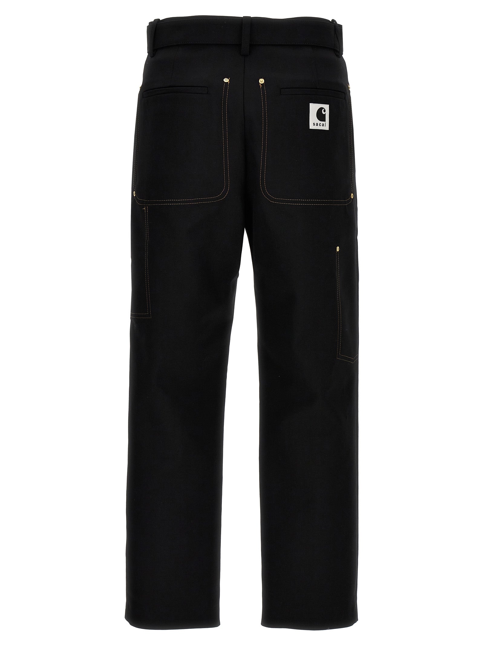 Sacai x Carhartt WIP canvas pants with zip and button closure, belt at the waist, pockets, back logo patch.