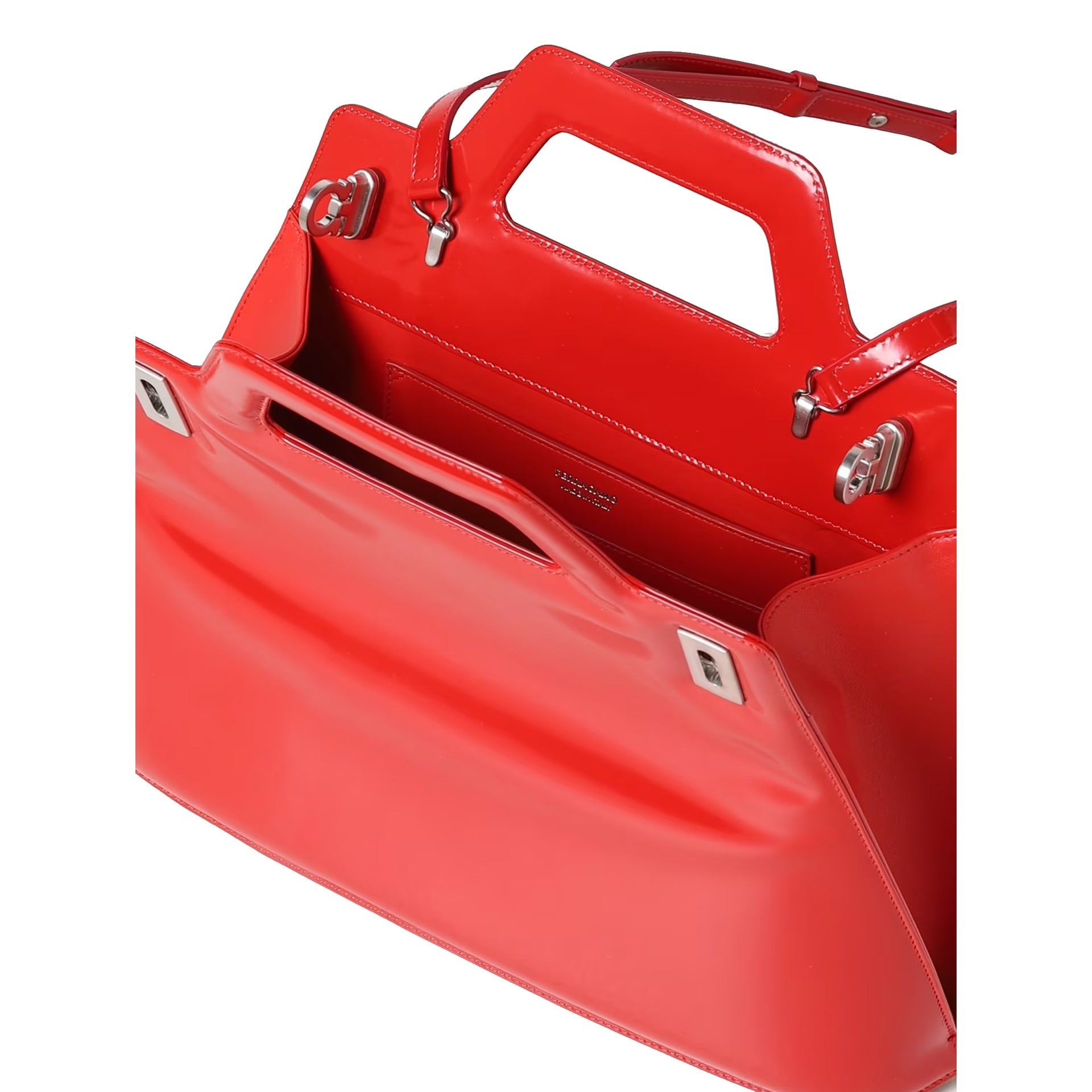 - Composition: 100% Leather - Patent effect - Two top handles - Width 10 cm - height 28 cm - Detachable shoulder strap - Lenght 35 cm - Made in Italy -