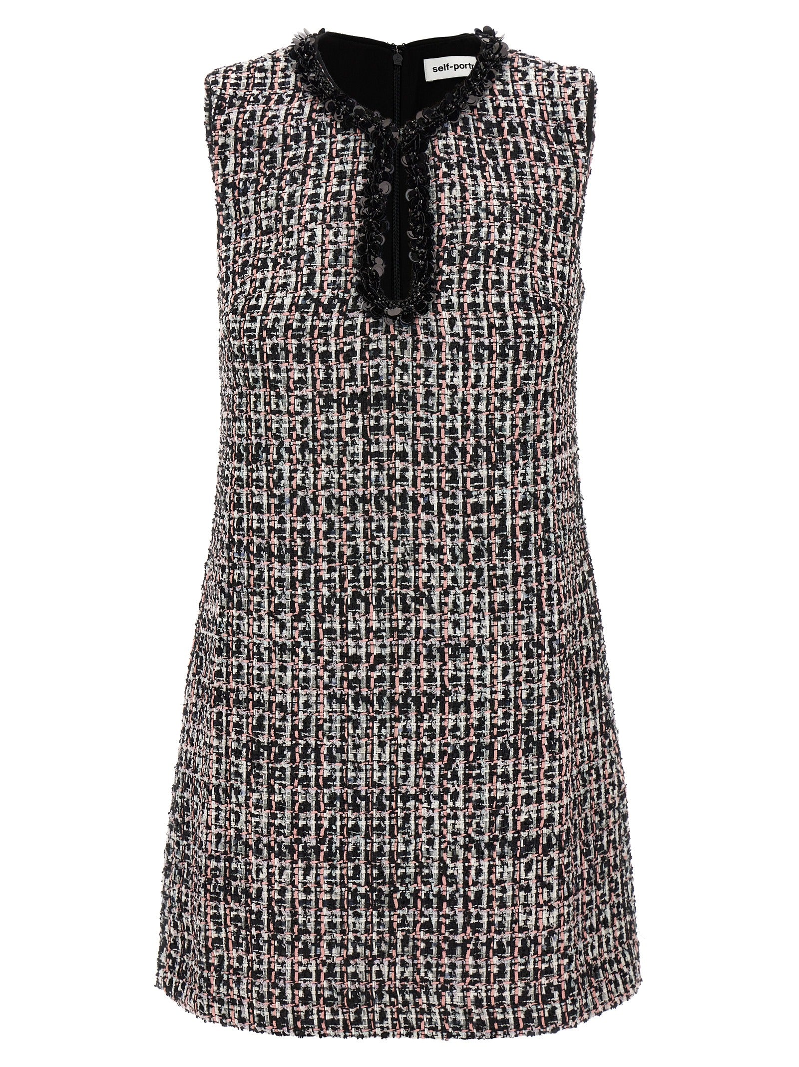 Self Portrait 'Black Boucle Embellished Mini' Dress