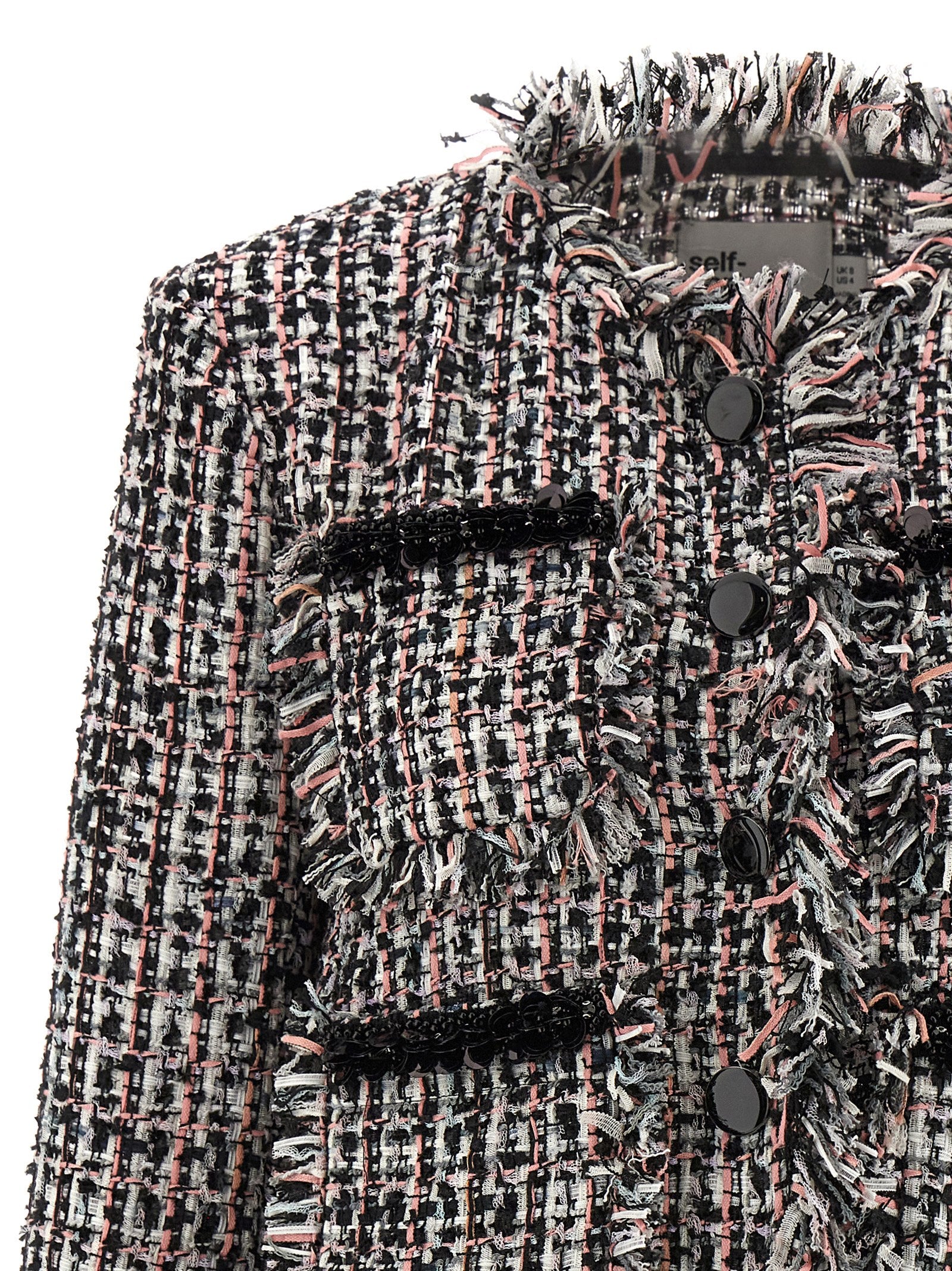 Self Portrait 'Black Fringed Boucle' Short Jacket