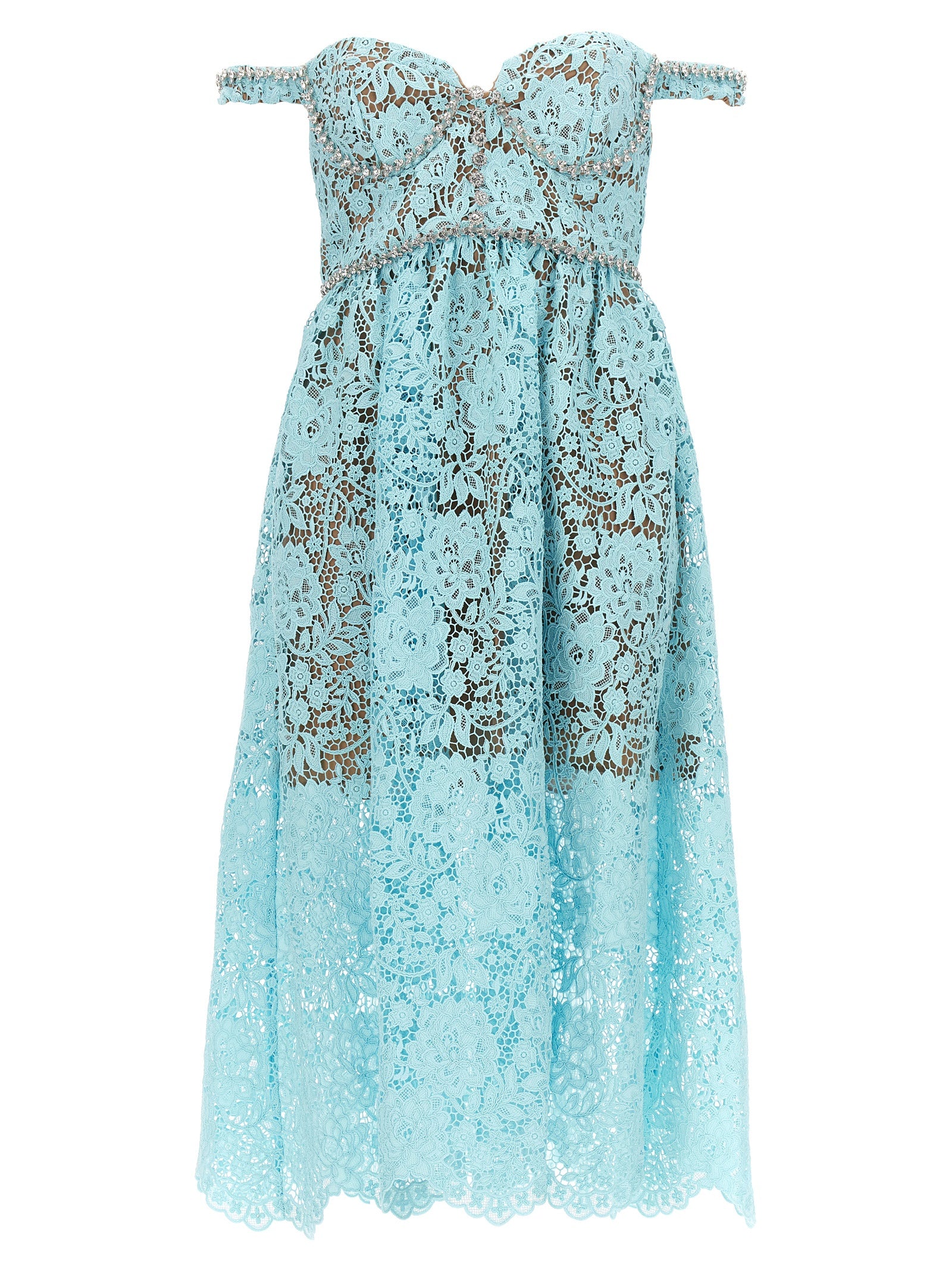 Self Portrait Blue Cord Lace Diamante Midi Dress
