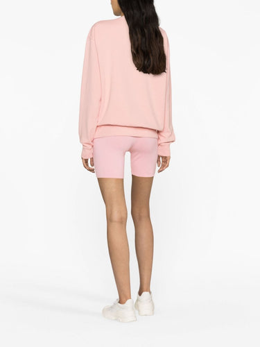 logo-print cycling shorts from Sporty & Rich featuring cotton blend, stretch-design, logo print to the front, elasticated waistband, thigh-length and light pink/white.