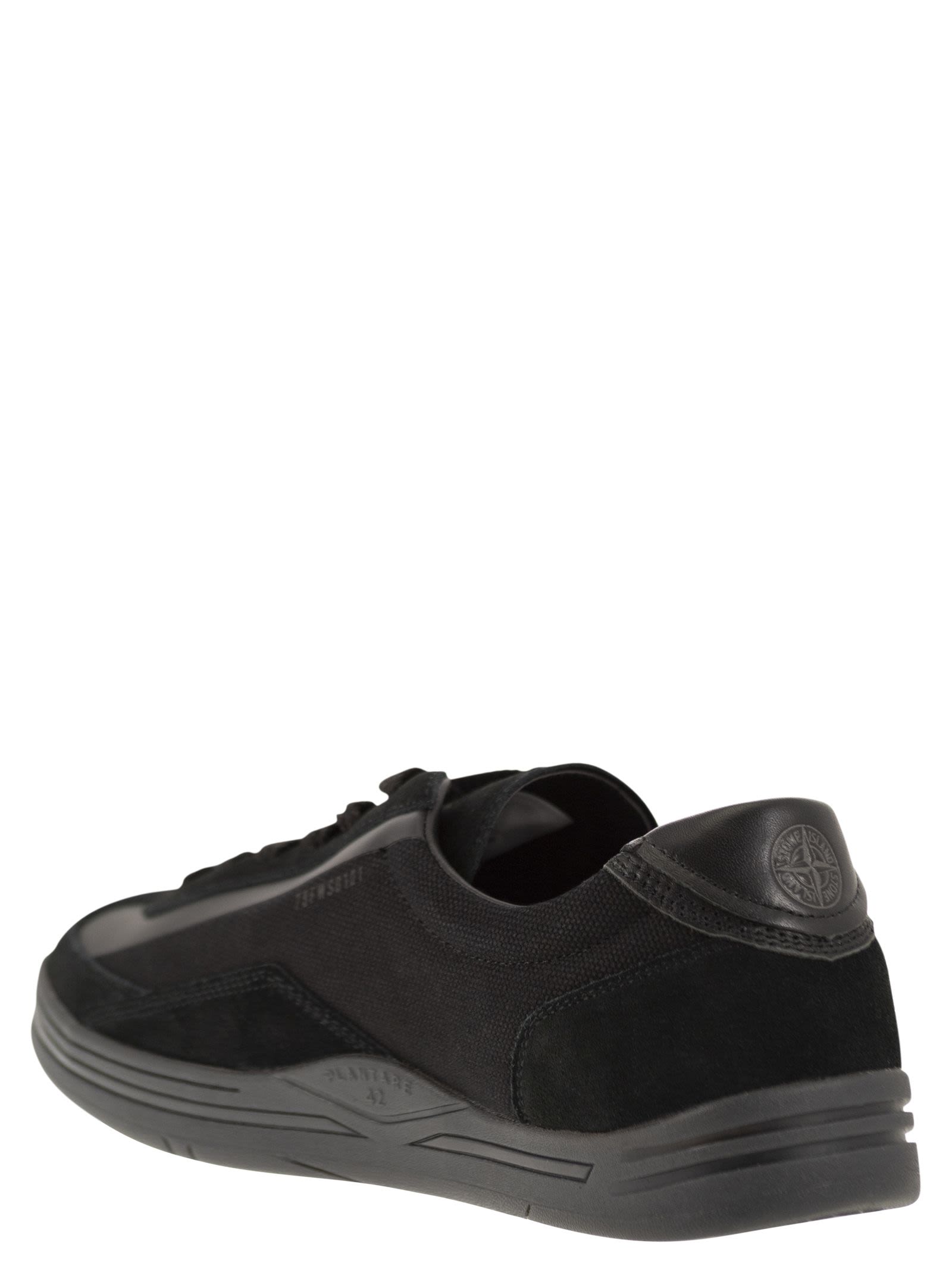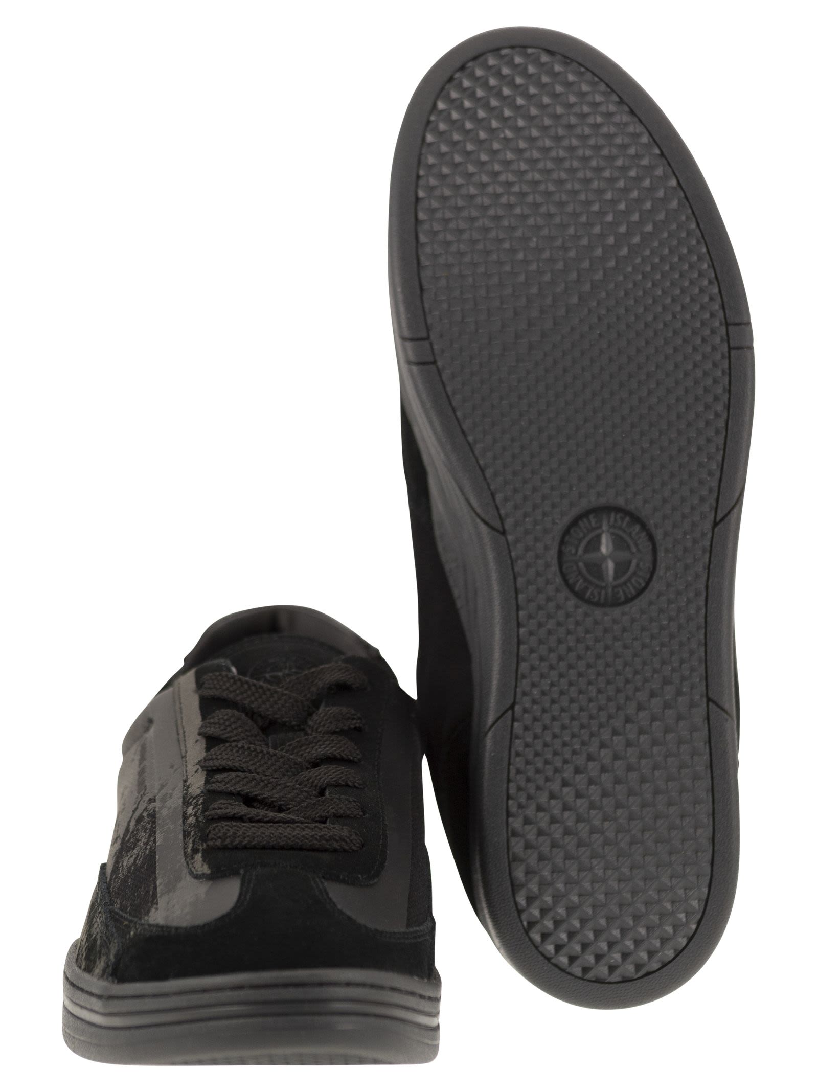 This classic low-cut mix of '70s retro trainers and military trainers features an upper made of sturdy canvas fabric and soft suede with clear rubber detailing. The outer side of the shoe is finished with an industrial pattern printed on rubber. The embossed Windrose logos, handcrafted stitching and tonal rubber sole are a nod to an icon celebrated by the British Stone Island community. The lace tips refer to Stone Island's iconic black metal hardware. - Lace-up closure DESIGNER ID: 79FWS0101 V0029