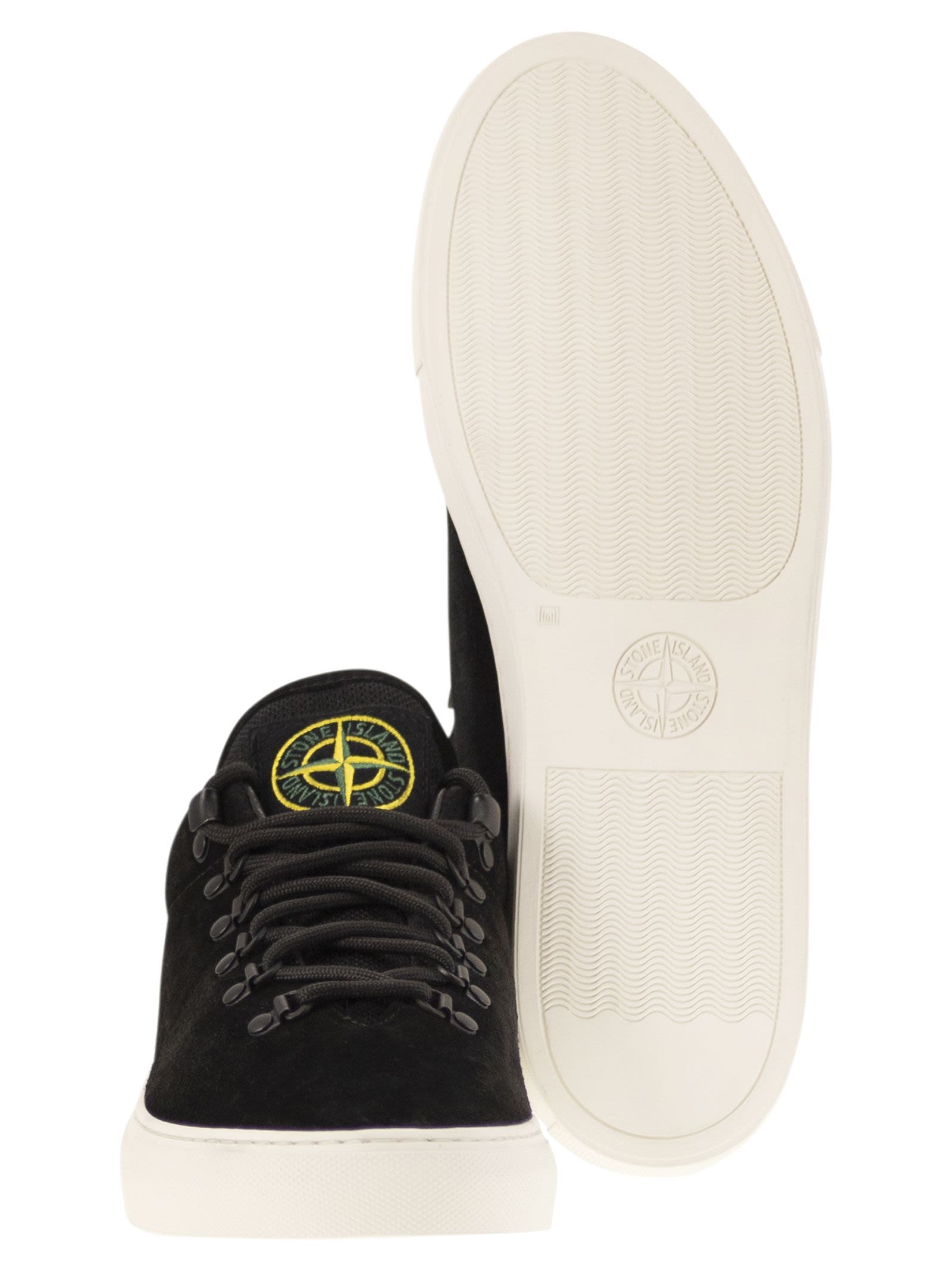 Leather lace-up trainer inspired by a hiking boot, with metal loops and nylon rope lacing, Nylon Metal details and a Stone Island Compass patch. - Metal loops and hooks - Padded tongue - Rubber box sole - Stone Island Compass logo DESIGNER ID: K1SFWS100020S0172 V0029