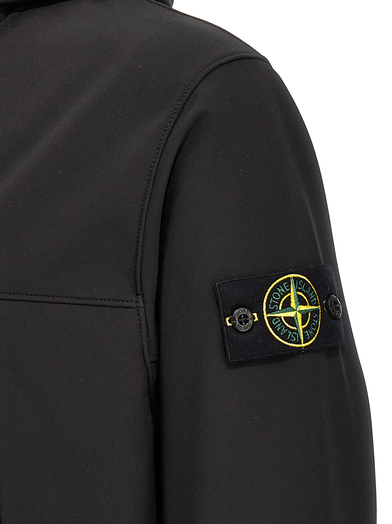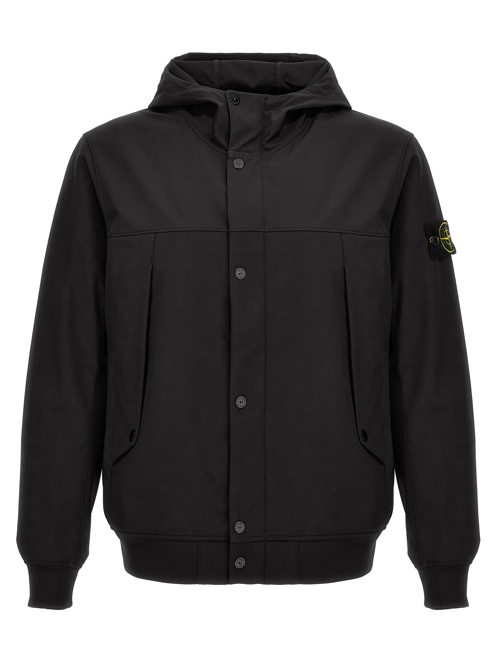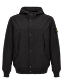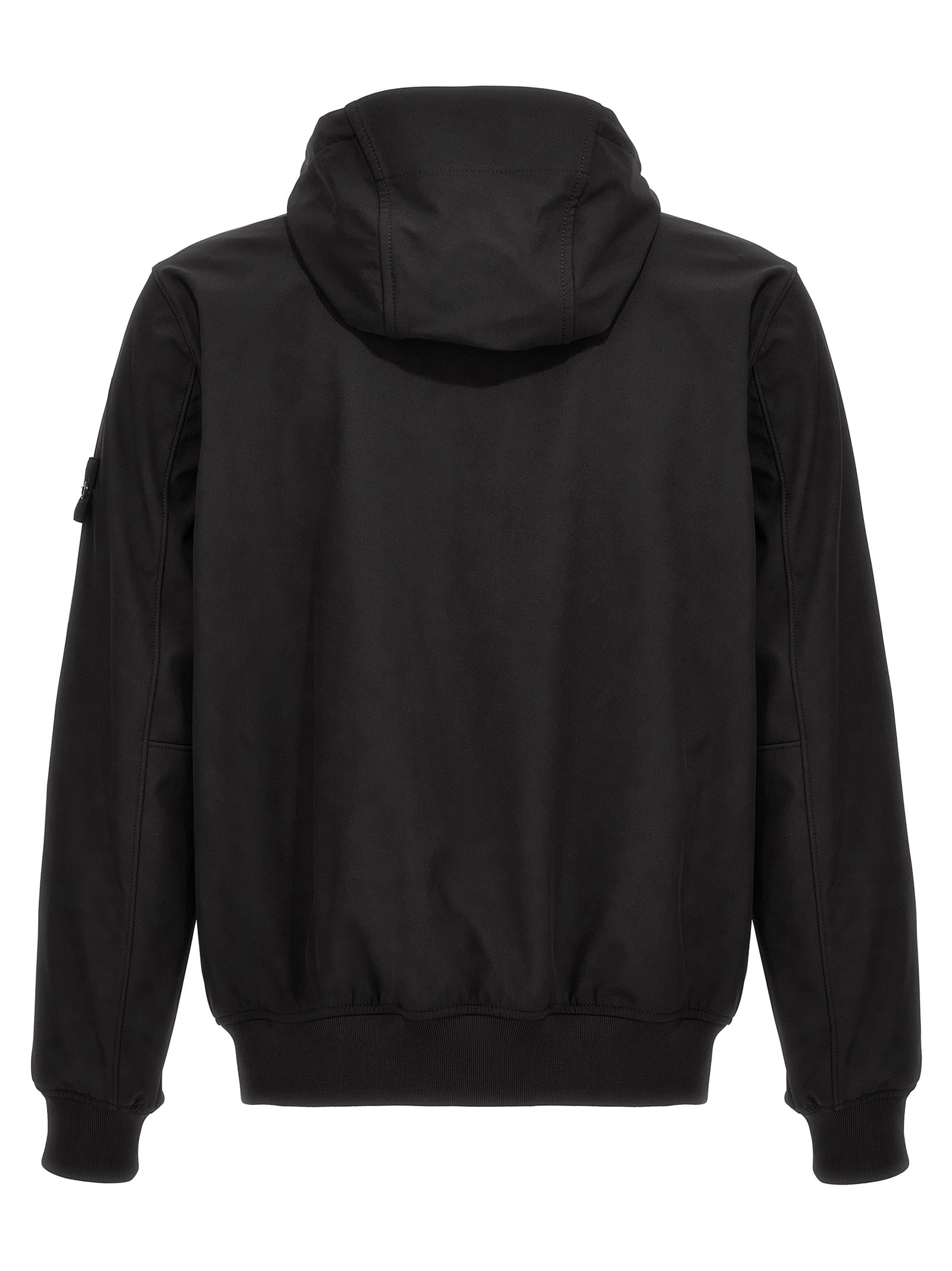 'Light Soft Shell-R' nylon jacket with hood, zip and button closure, pockets, long sleeves with knitted cuffs.