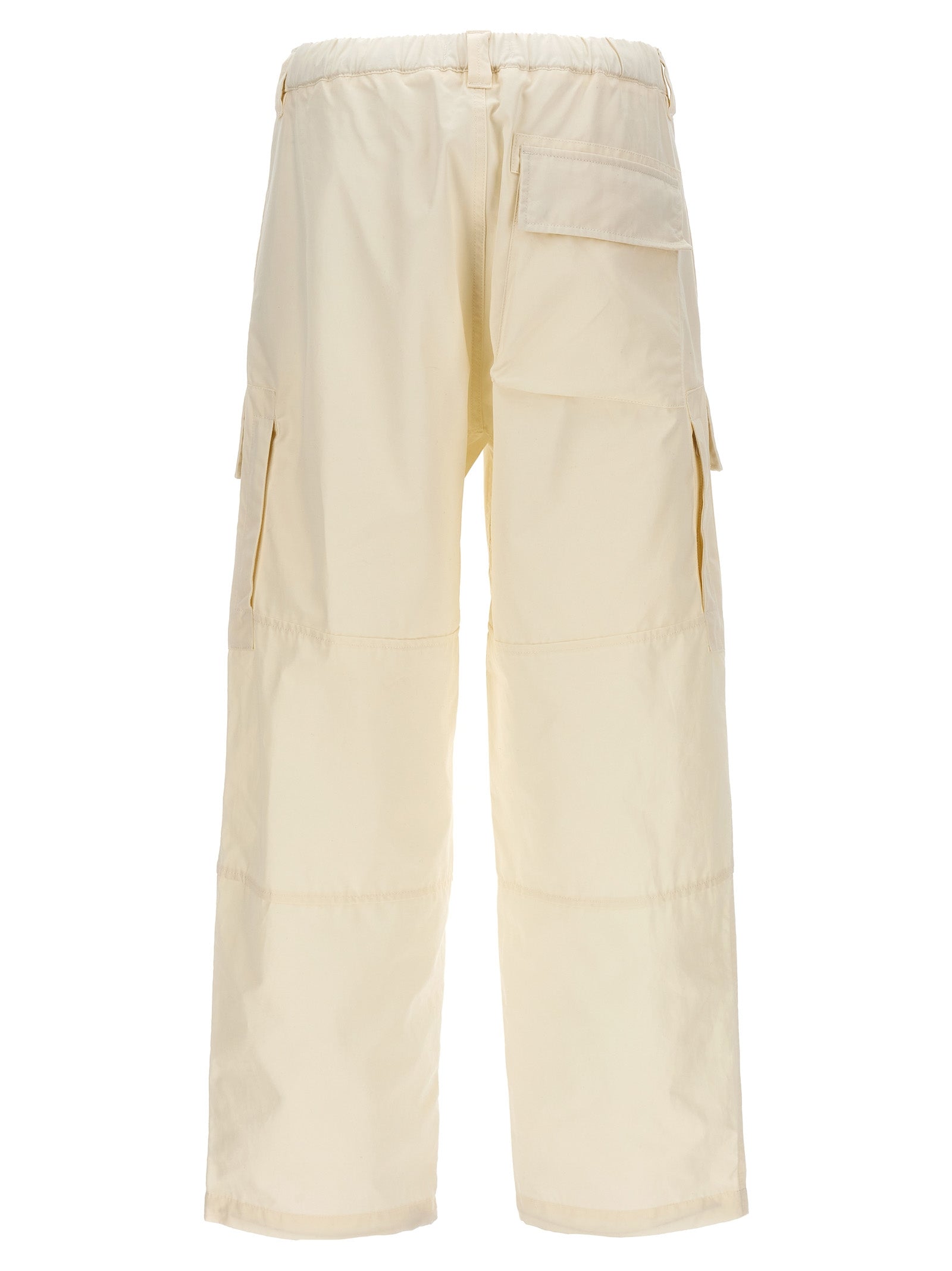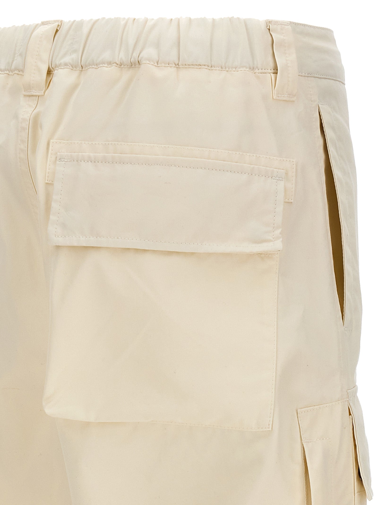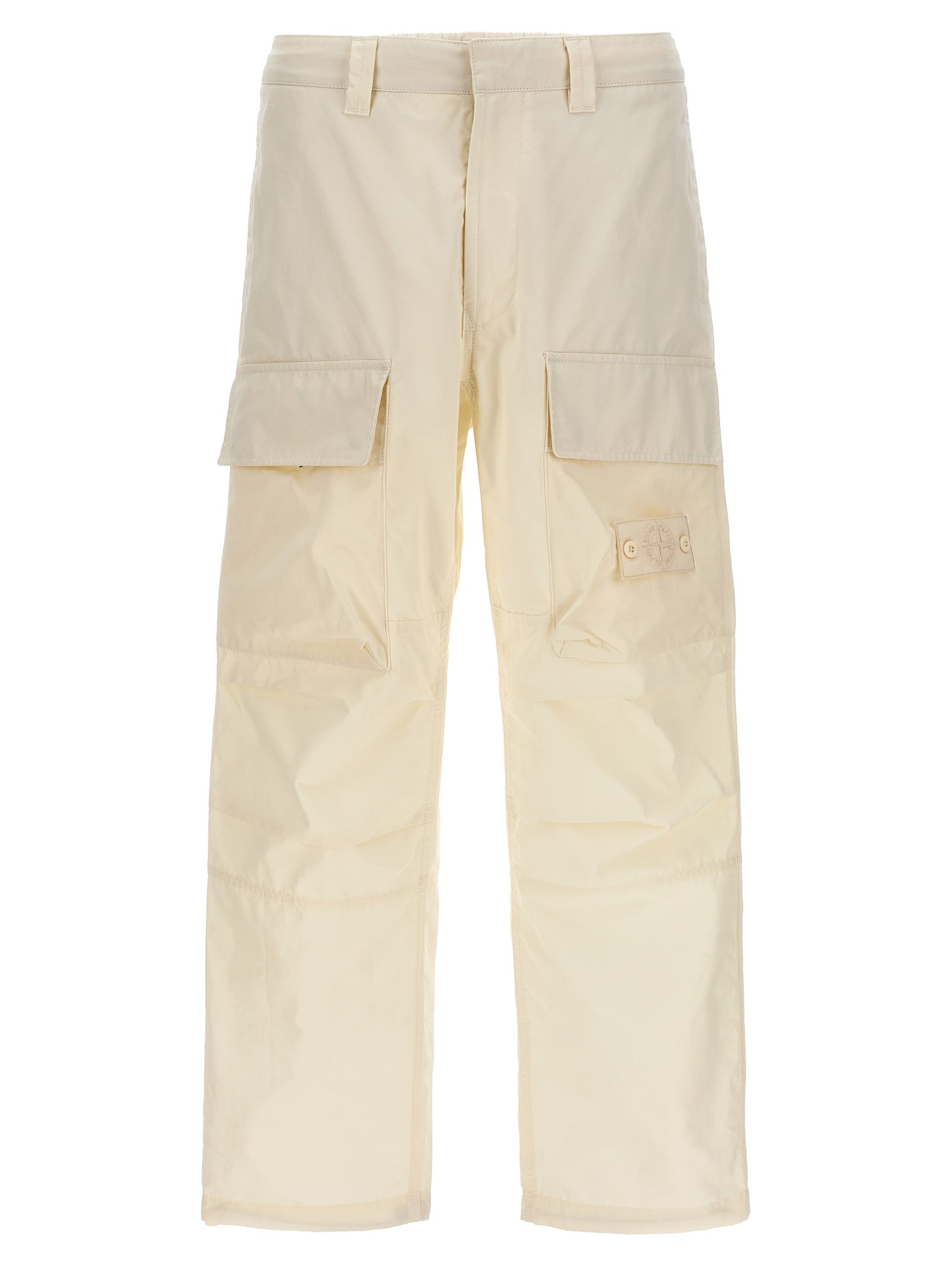 Cotton cargo pants with logo badge application, zip and button closure, pockets.