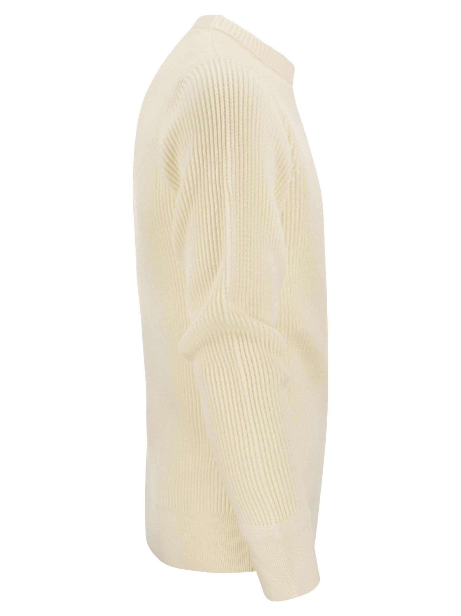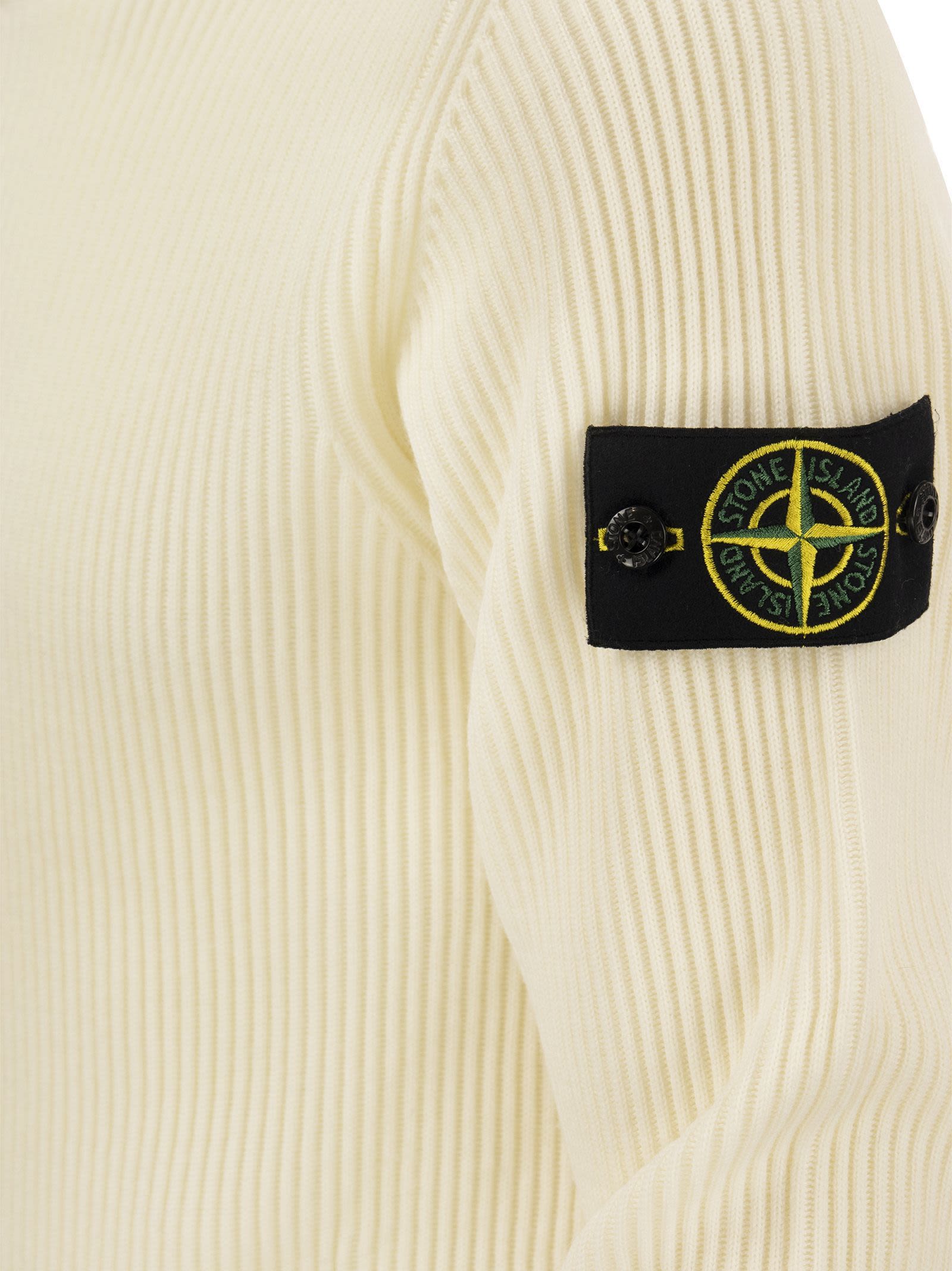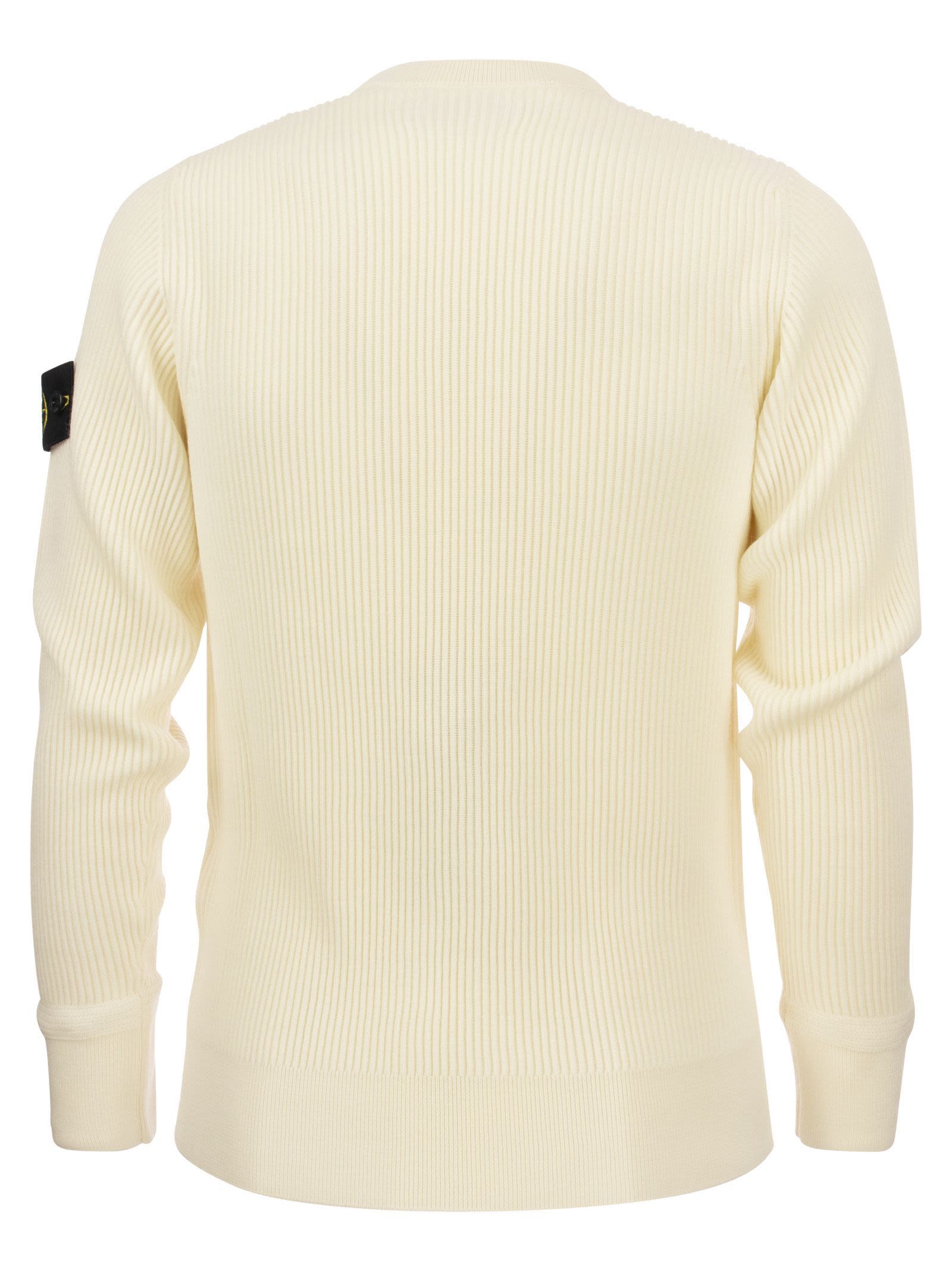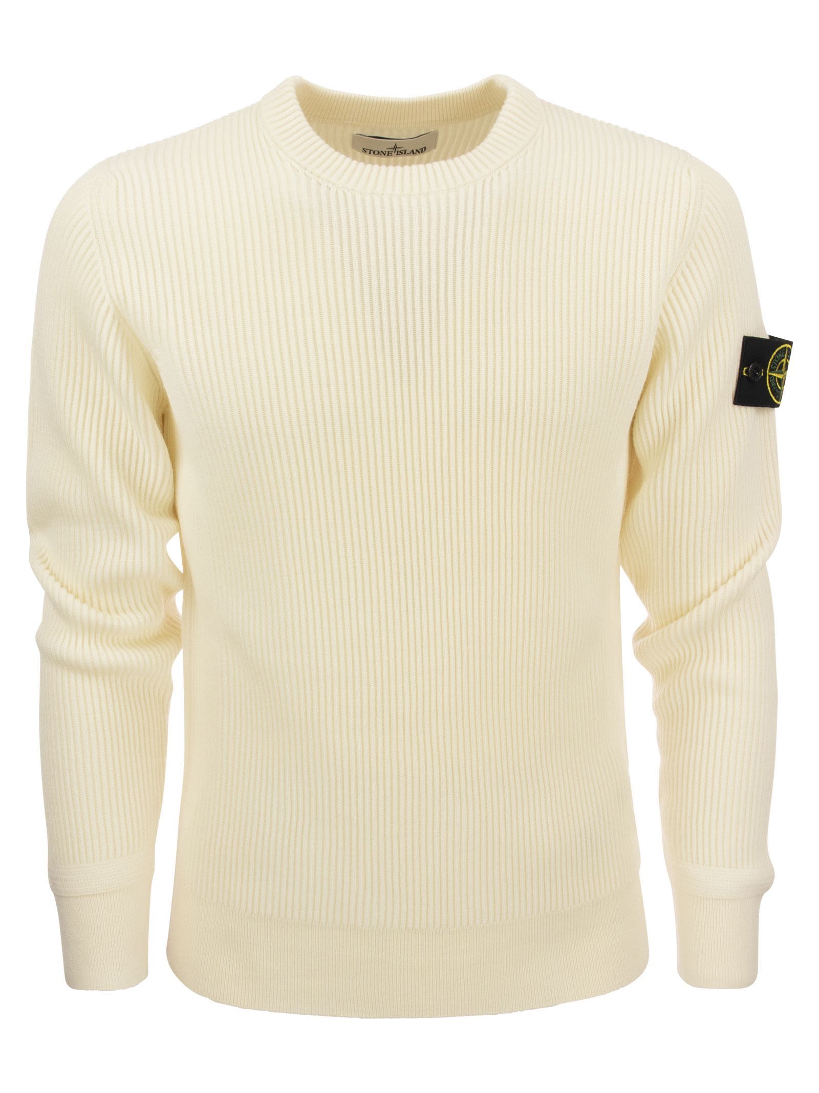 Stone Island Ribbed Sweater In Virgin Wool