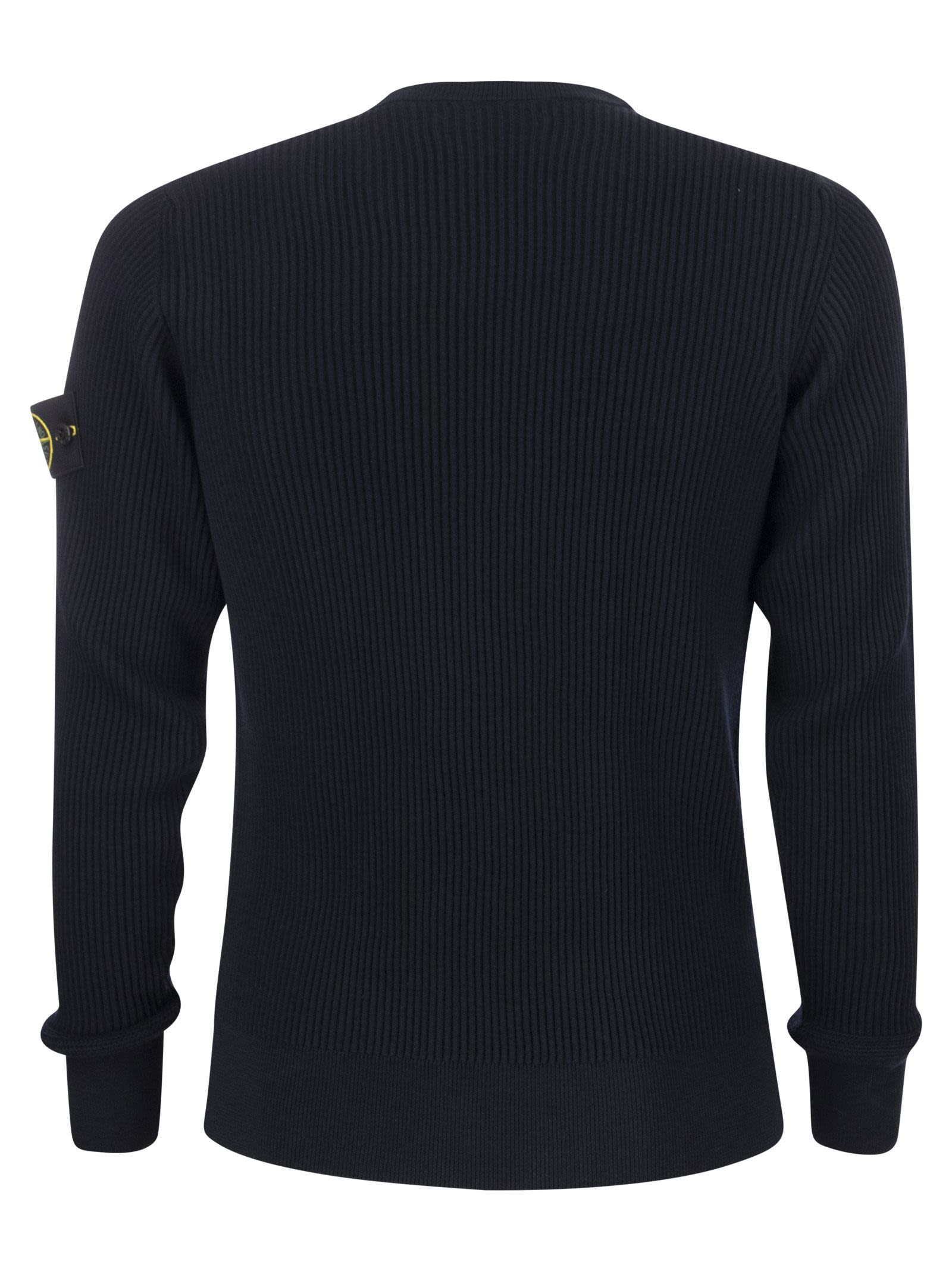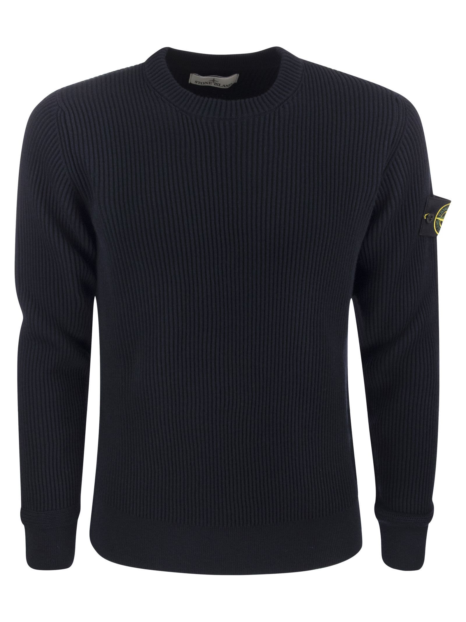 Crew-neck sweater in soft ribbed virgin wool with a sporty look and slim fit. Features ribbed collar, cuffs and hem. - Stone Island badge on left sleeve DESIGNER ID: 7915553C2 A0020