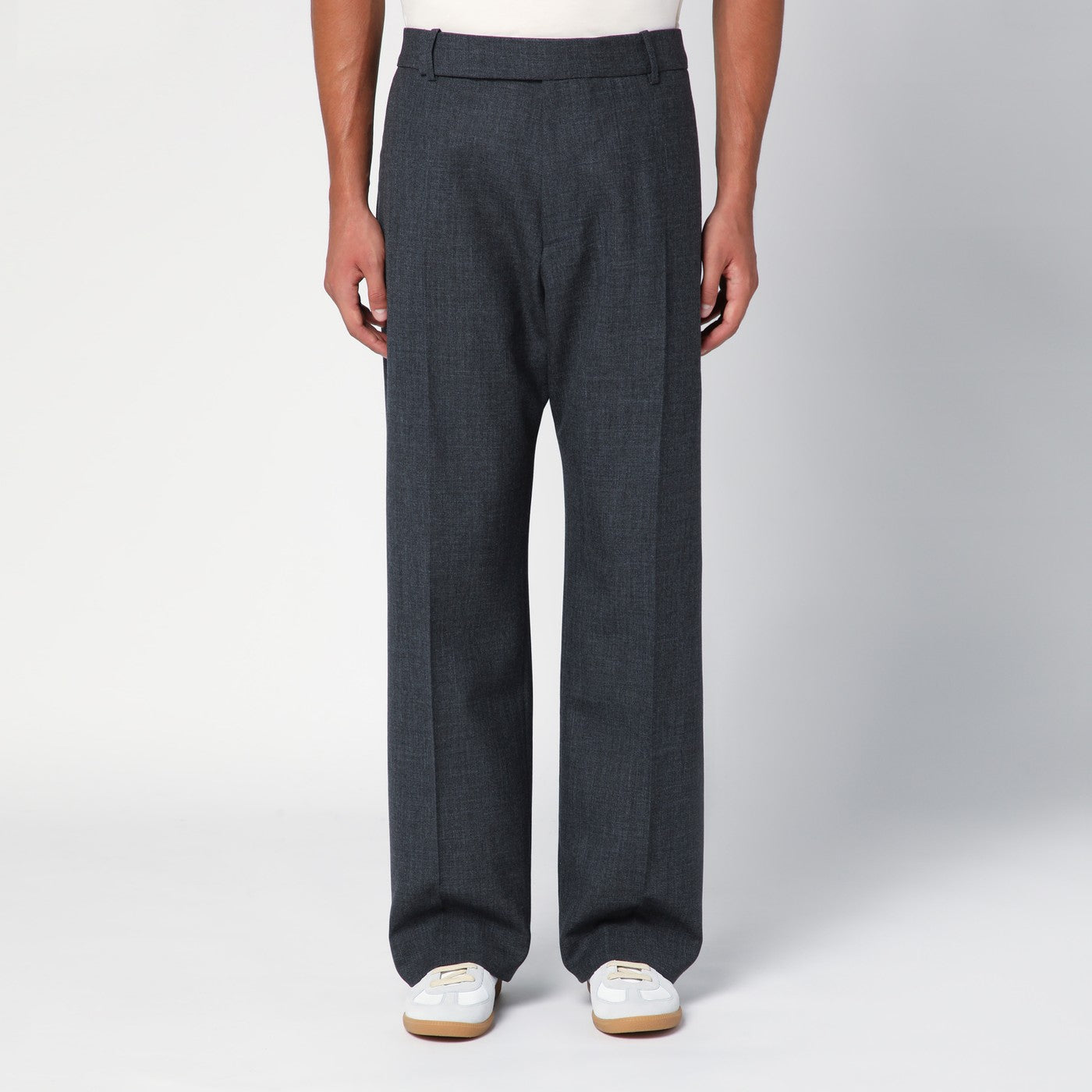 Grey wool loose-fitting trousers from Studio Nicholson featuring a front zip and hook fastening, waist loops, two side welt pockets and two back welt pockets.