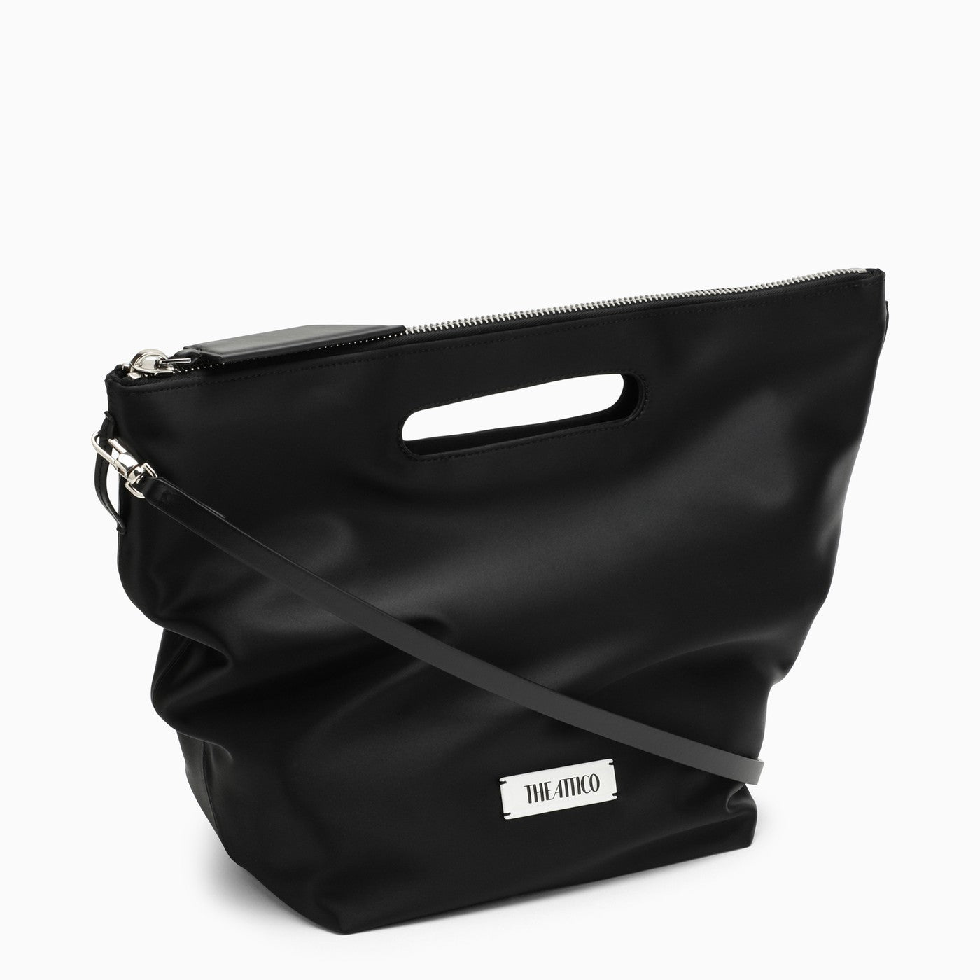 Black leather and fabric tote bag from The Attico featuring two top handles, an adjustable and removable shoulder strap, a stitched logo on the front, silver-tone metal hardware and a top zip fastening.