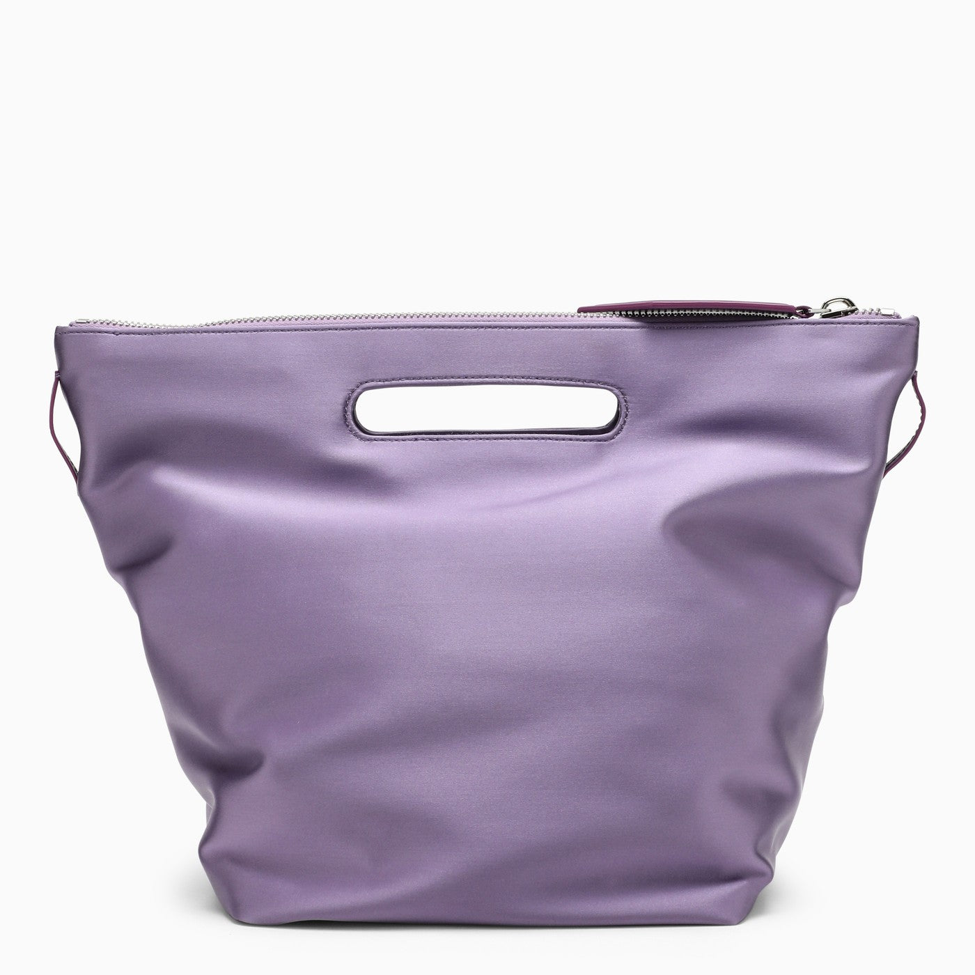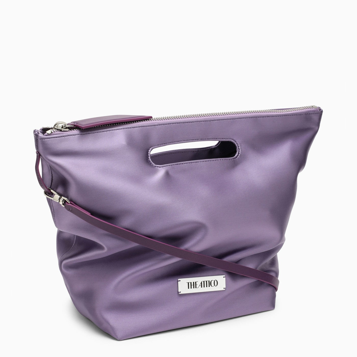 Lilac leather and fabric tote bag from The Attico featuring two top handles, an adjustable and removable shoulder strap, a stitched logo on the front, silver-tone metal hardware and a top zip fastening.