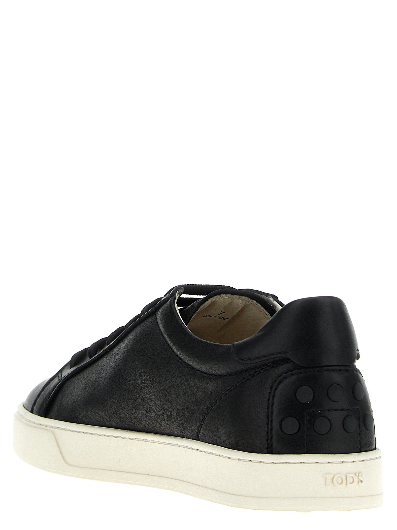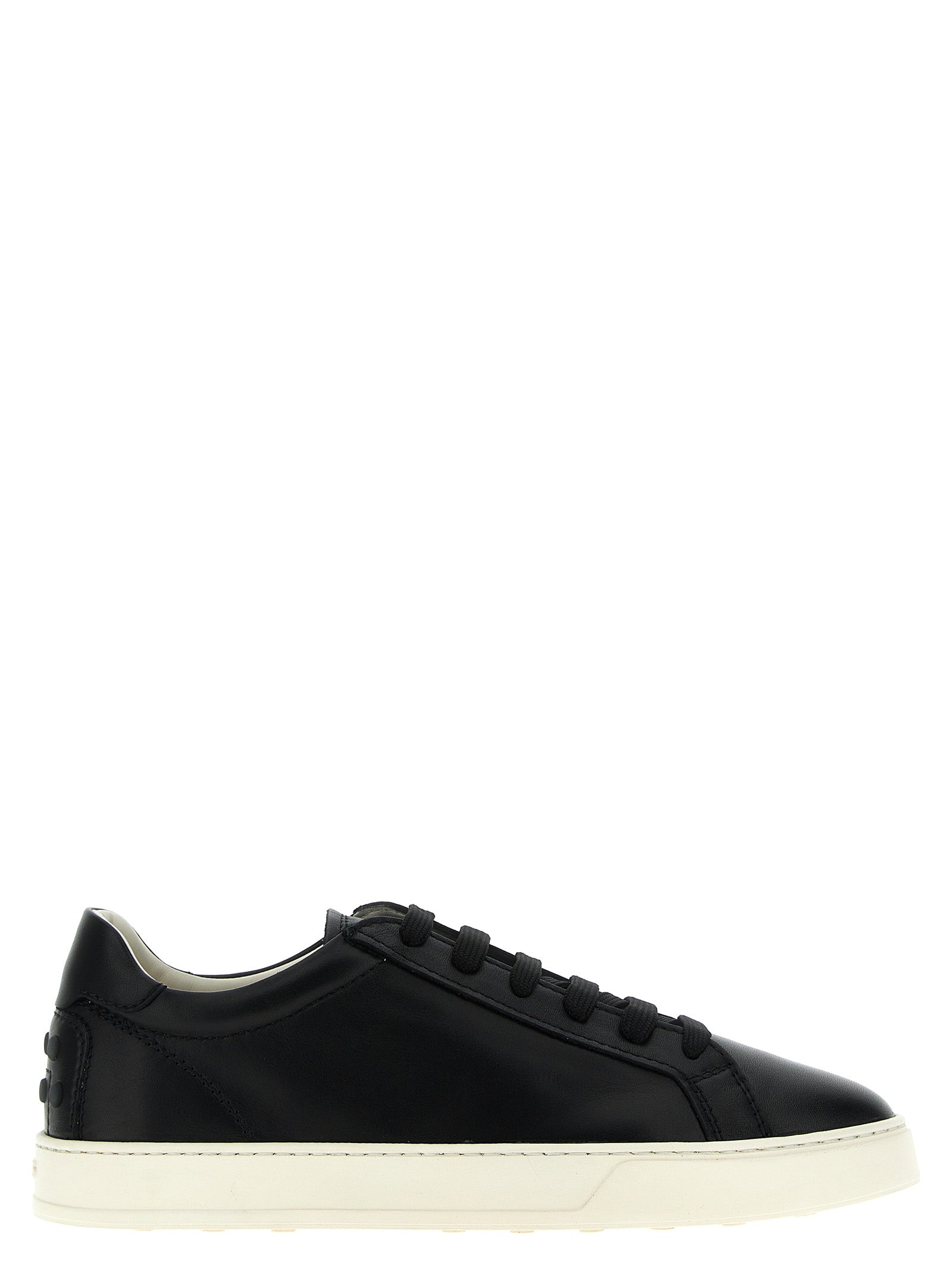Leather sneakers with laces, rubber sole, rubber gommini detail on the heel.