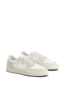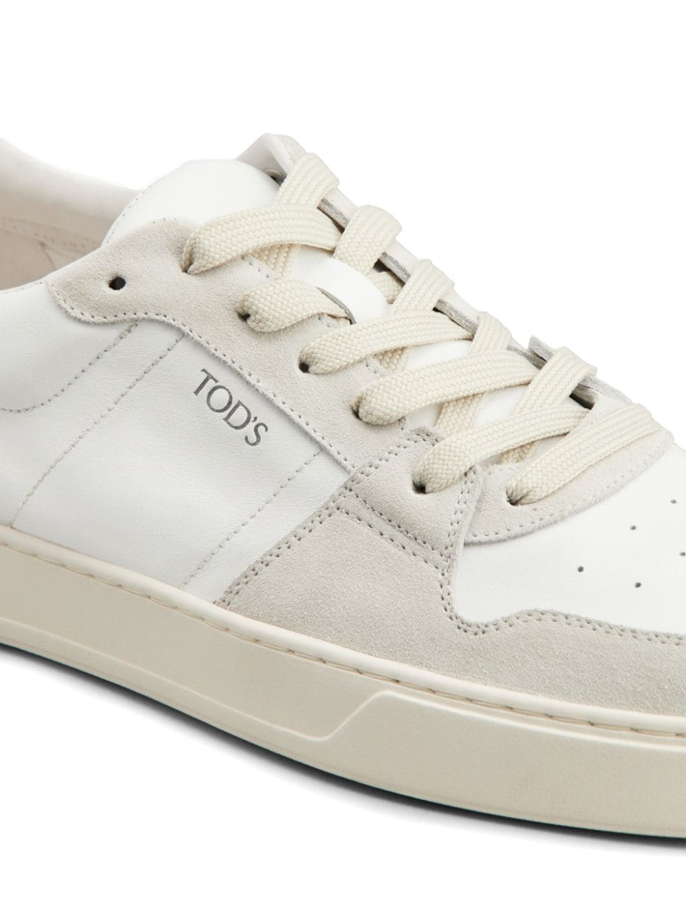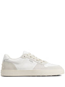 white/light beige calf suede canvas panelled design two-tone design logo print to the side embossed detail round toe front lace-up fastening perforated toebox branded leather insole flat rubber sole