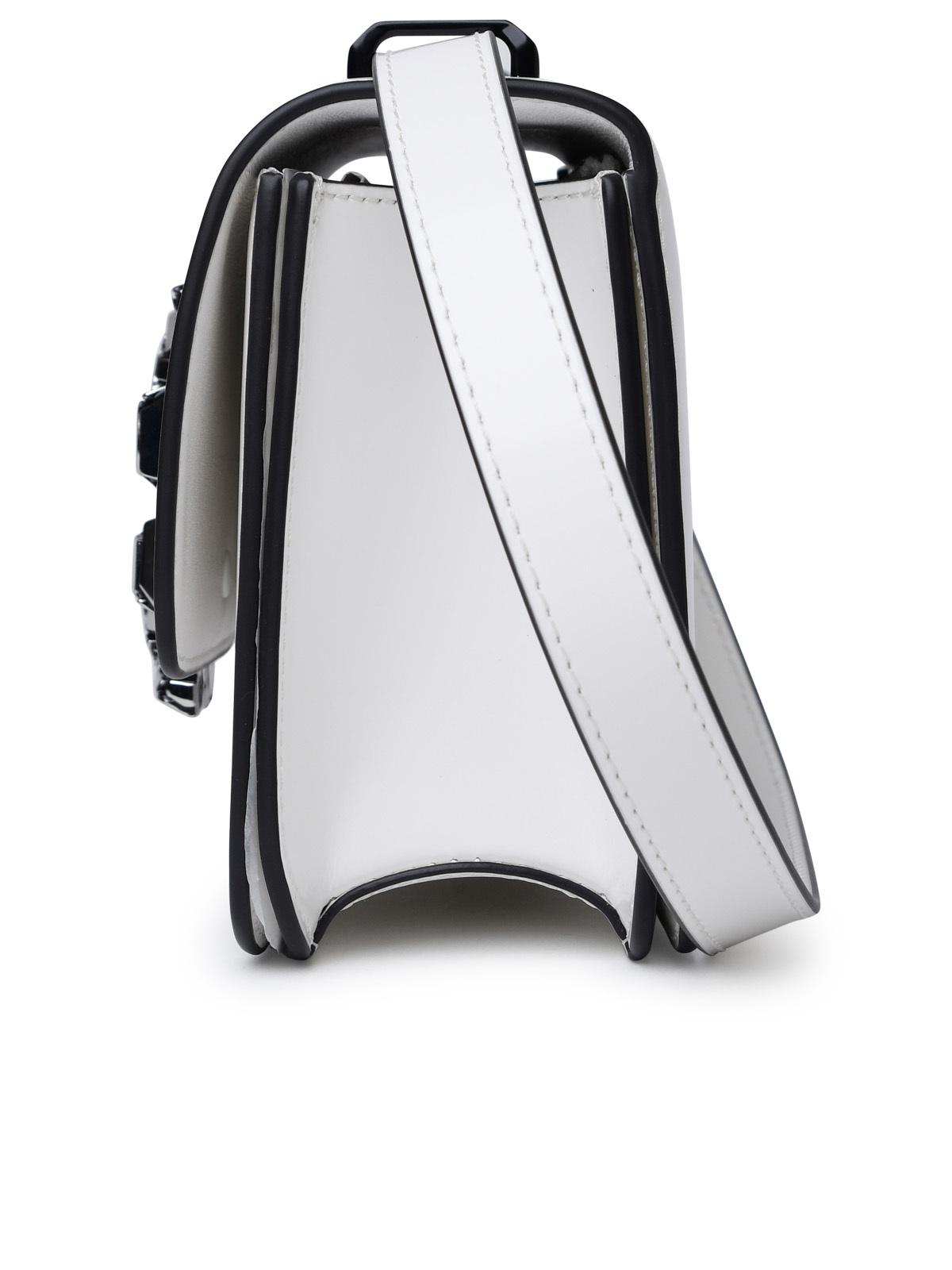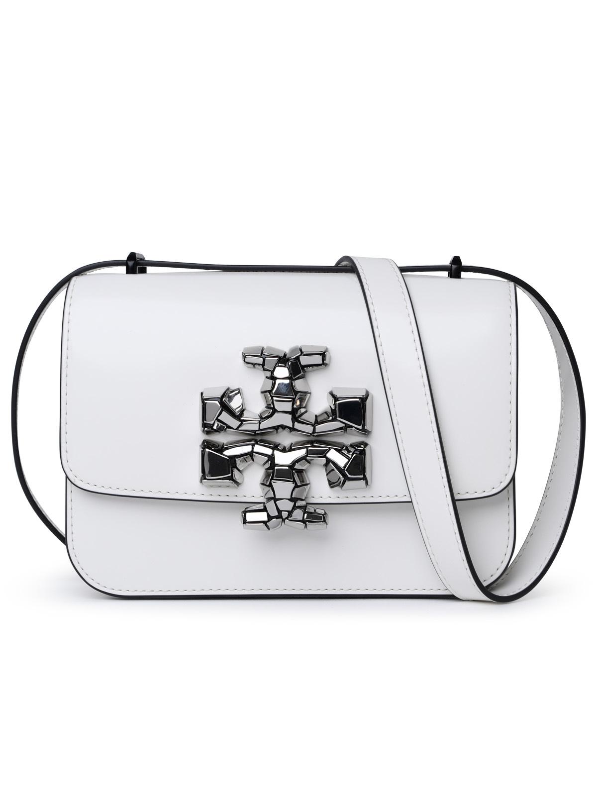 Semi-shiny smooth leather bag, removable and adjustable shoulder strap, front flap with magnetic closure, double sculptural maxi 'T' logo on the front, one zip pocket and two inner welt pockets.\n19 x 13.5 x 7 cm