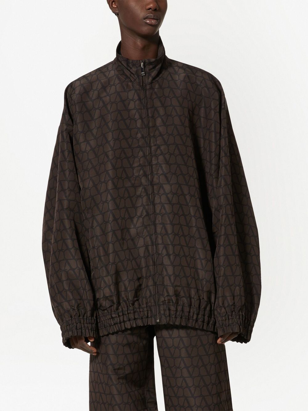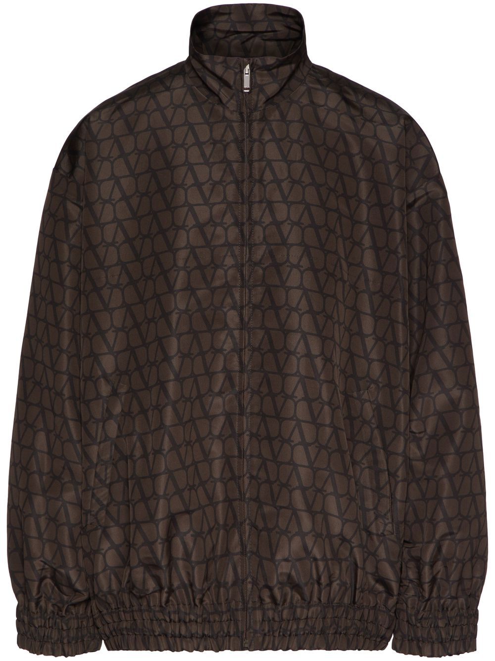 VLogo-print lightweight jacket featuring brown, VLogo Signature, high neck, drop shoulder, front zip fastening, long sleeves, elasticated cuffs and elasticated hem.
