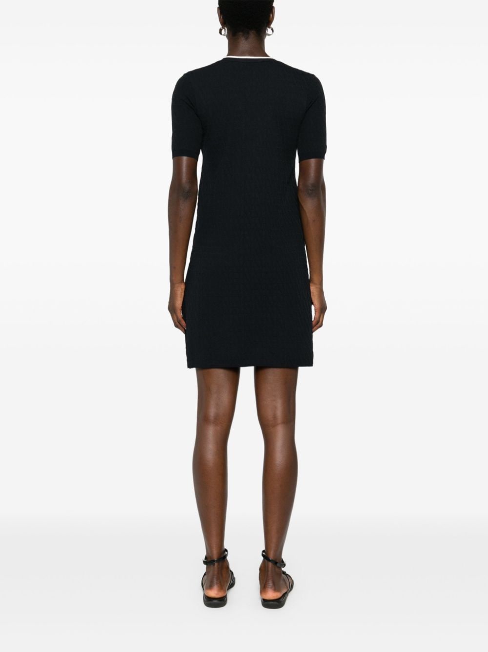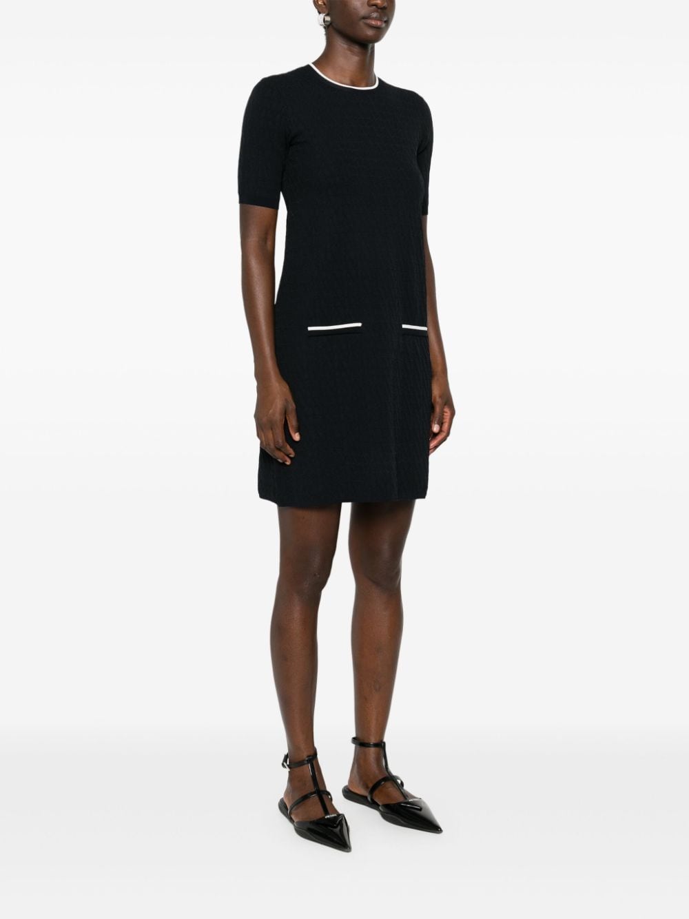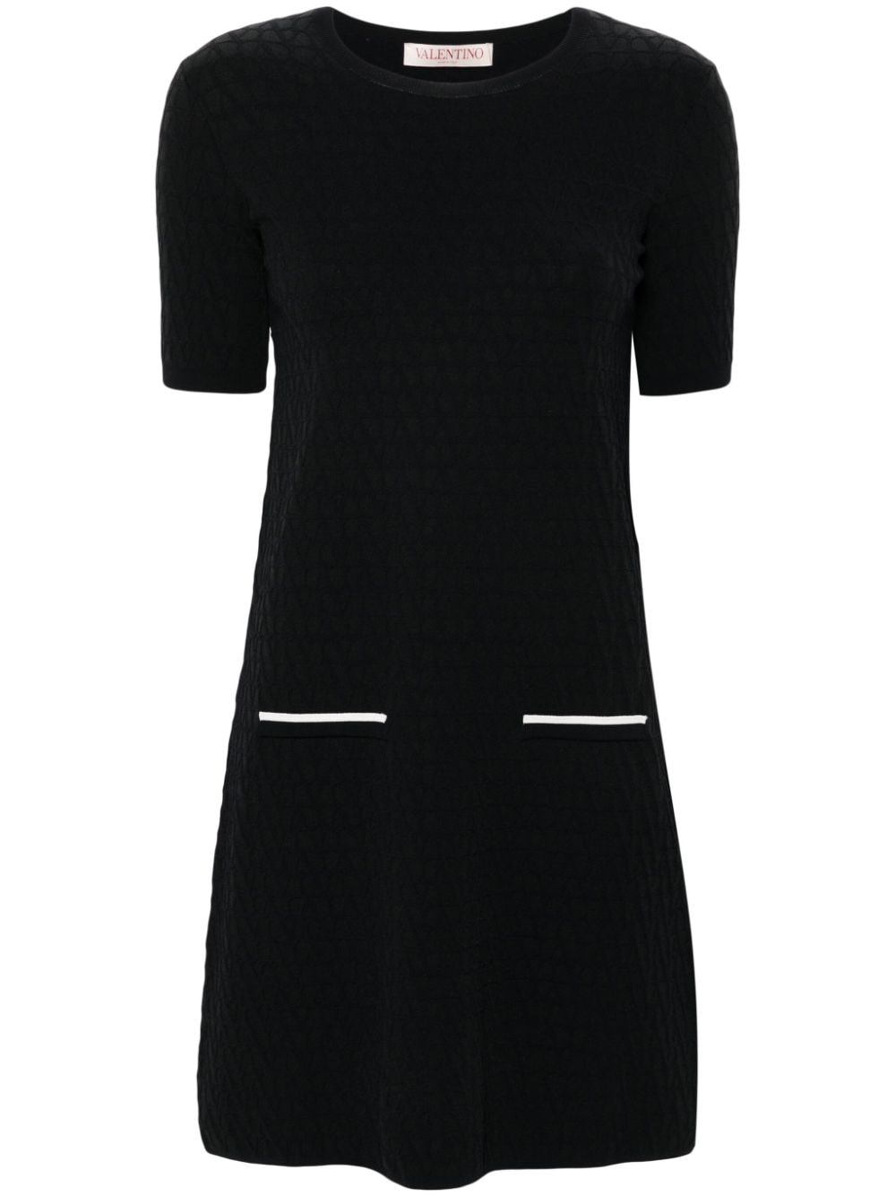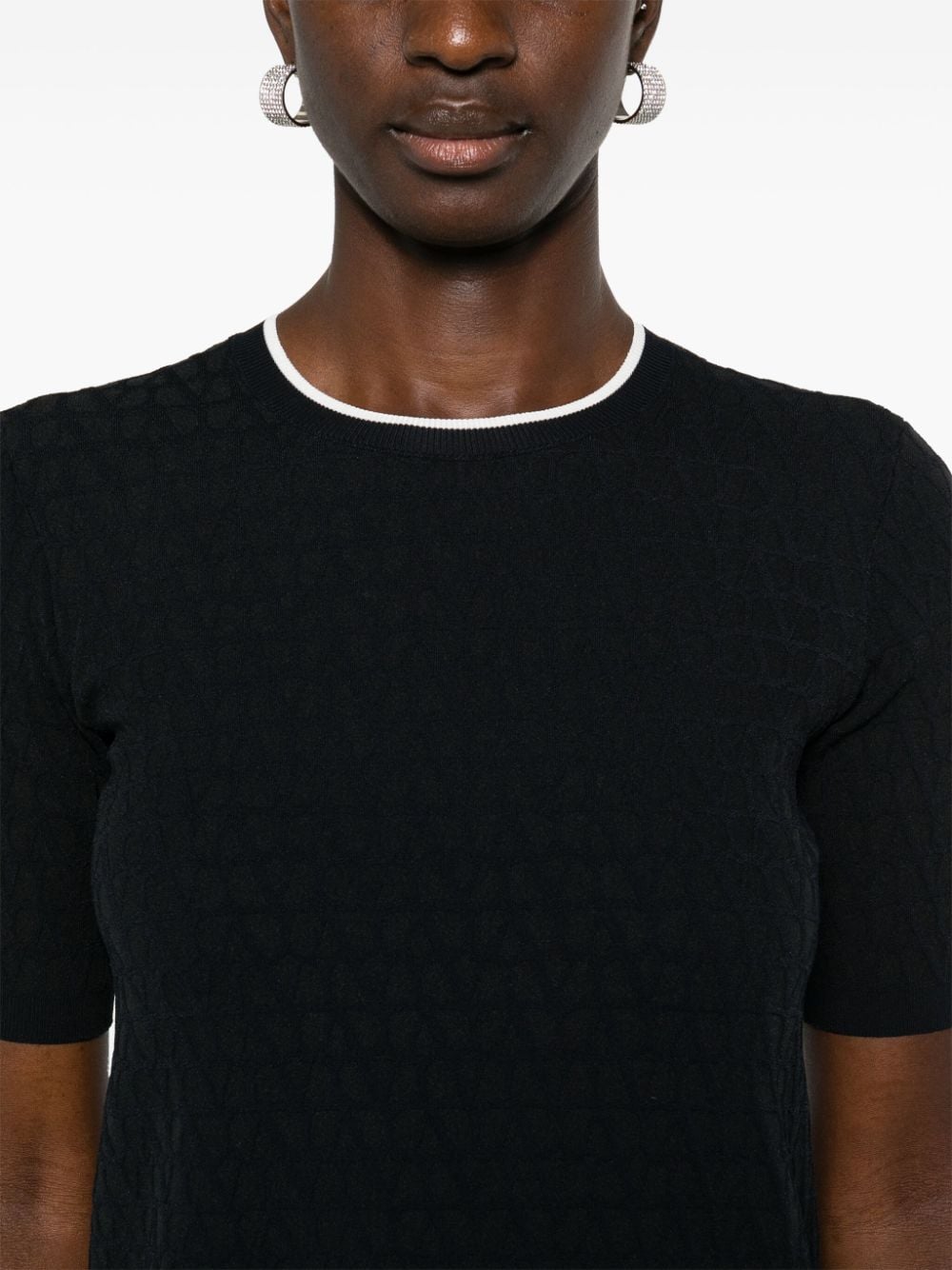 Valentino Ready To Wear navy blue stretch-design knitted construction Toile Iconographe pattern contrasting border round neck short sleeves ribbed cuffs faux pocket detail straight hem