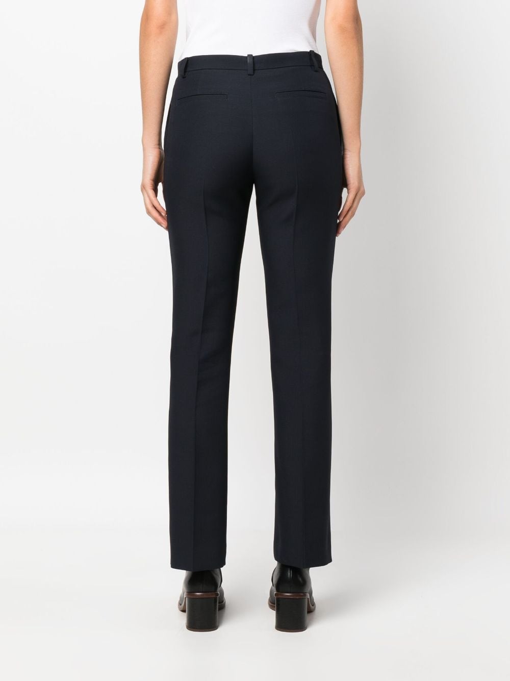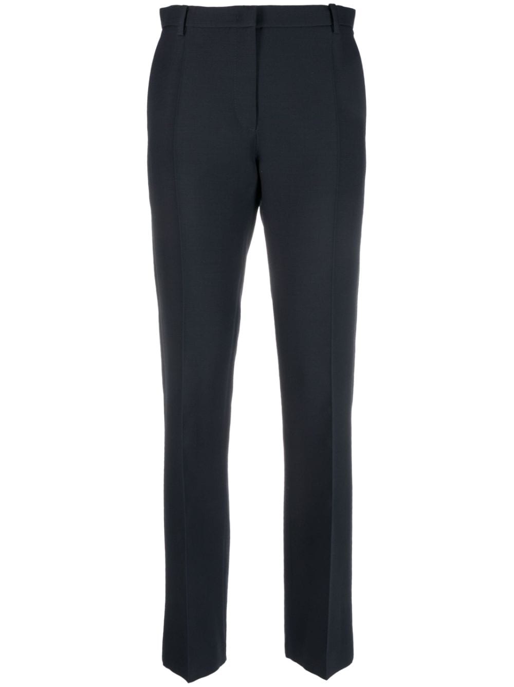 wool-silk blend tailored trousers from VALENTINO GARAVANI featuring Valentino Ready To Wear, navy blue, virgin wool-silk blend, pressed crease, slim cut, mid-rise, belt loops, concealed front fastening, two side slash pockets and two rear welt pockets.