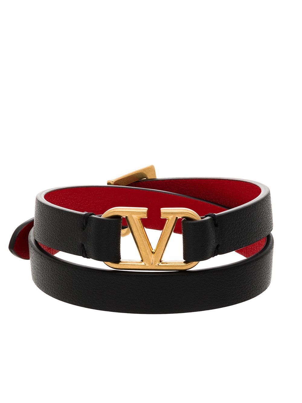 This black Valentino Garavani VLogo leather wrap bracelet is made in Italy. Boasting a grained finish and red reverse, it has a gold tone signature logo plaque and buckle fastening. Try as we might, we can't rap. However, our wrap skills are much sought after as they include pieces like this Valentino Garavani bracelet.