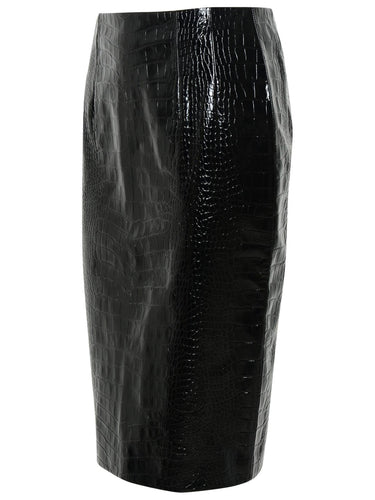 Leather midi skirt with embossed croc effect, high waist, back zip closure, central vent at the hem.