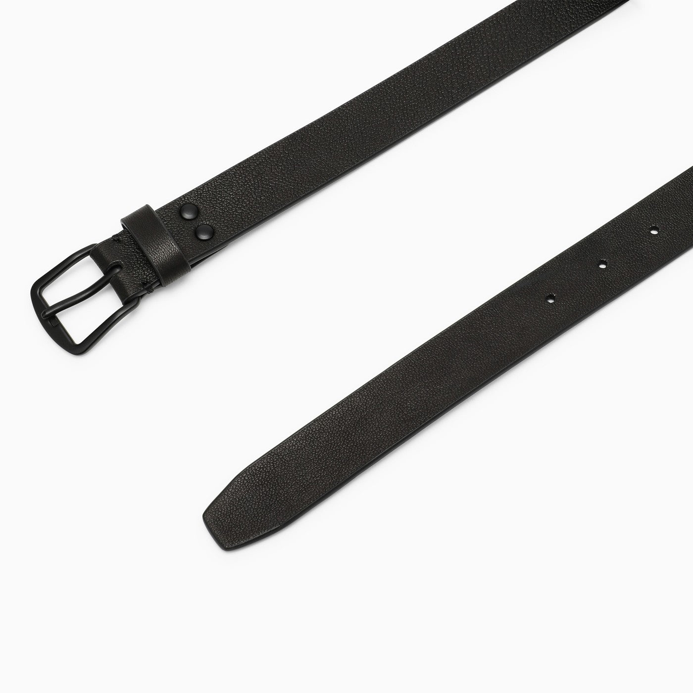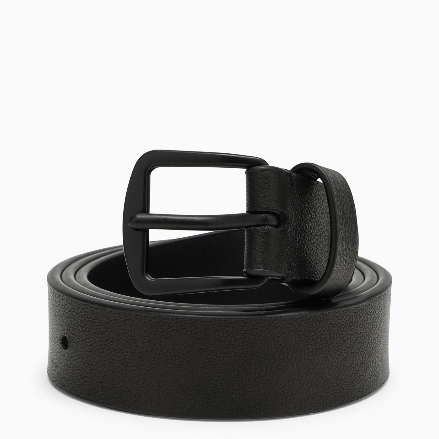 Black leather Ann Demeulemeester belt, featuring adjustable size and tone-on-tone metal buckle.