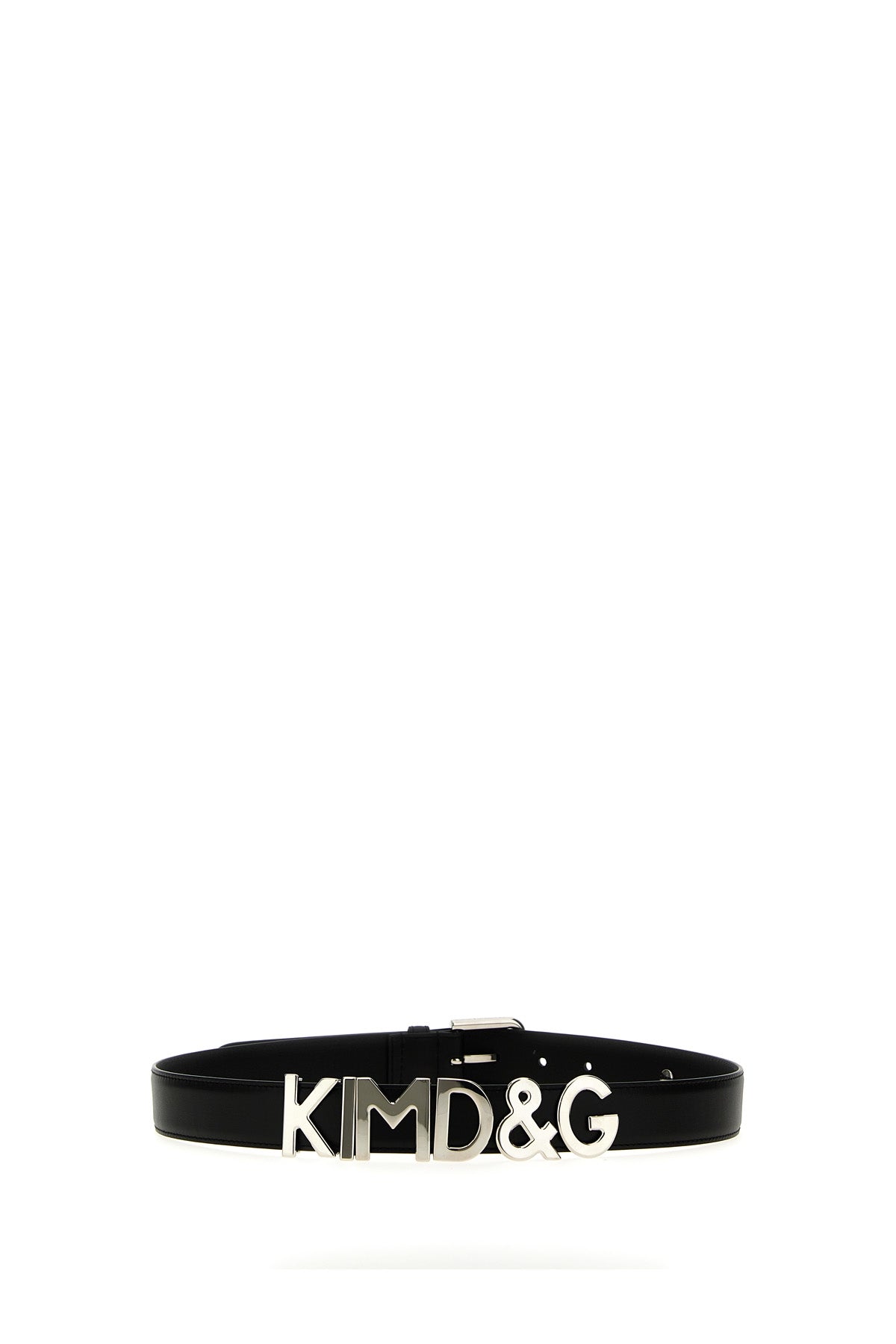Kim D&G' calf leather belt with palladium galvanized metal lettering logo and a metal buckle.