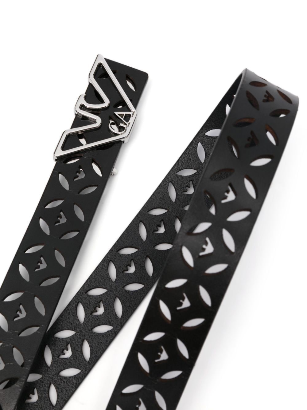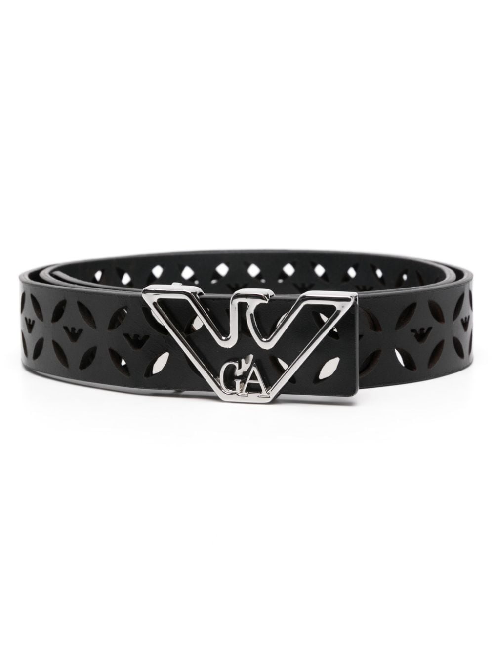black leather smooth grain cut-out logo detailing adjustable fit silver-tone hardware logo-buckle fastening