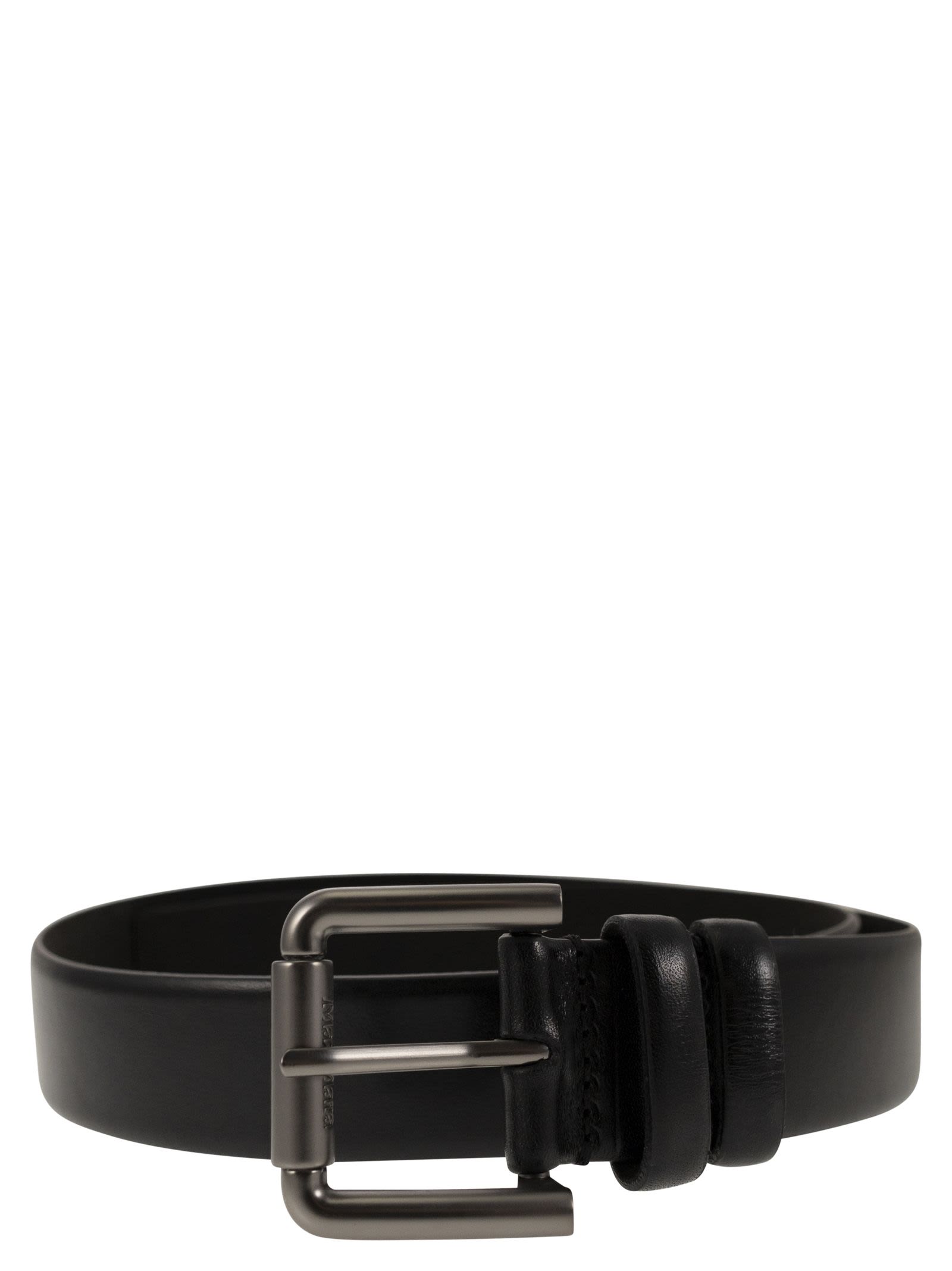Men's-inspired belt in soft leather, treated with a hand-rubbed wet-effect finish that makes it shiny and pleasantly soft. - Pin buckle closure - Height 3.5 cm DESIGNER ID: 2414501013600 003