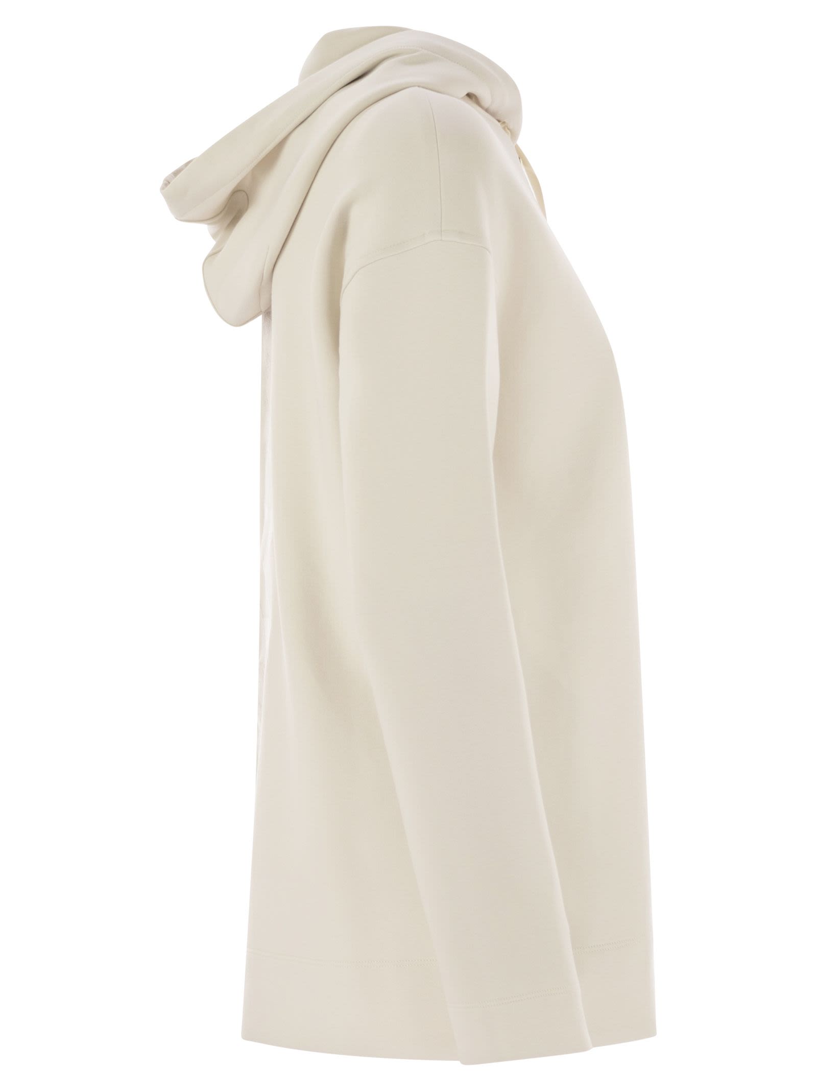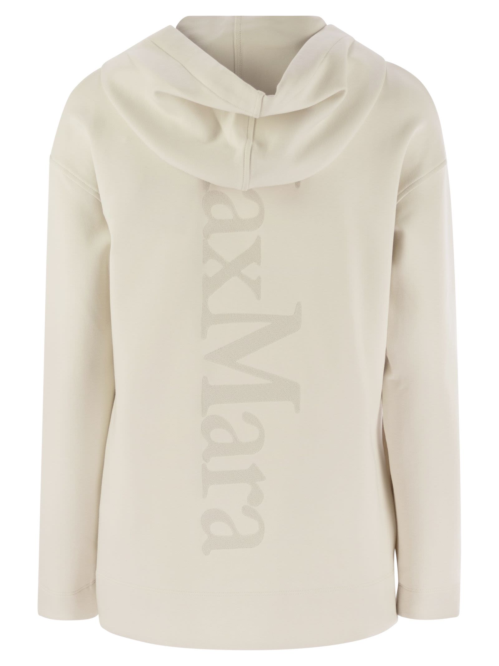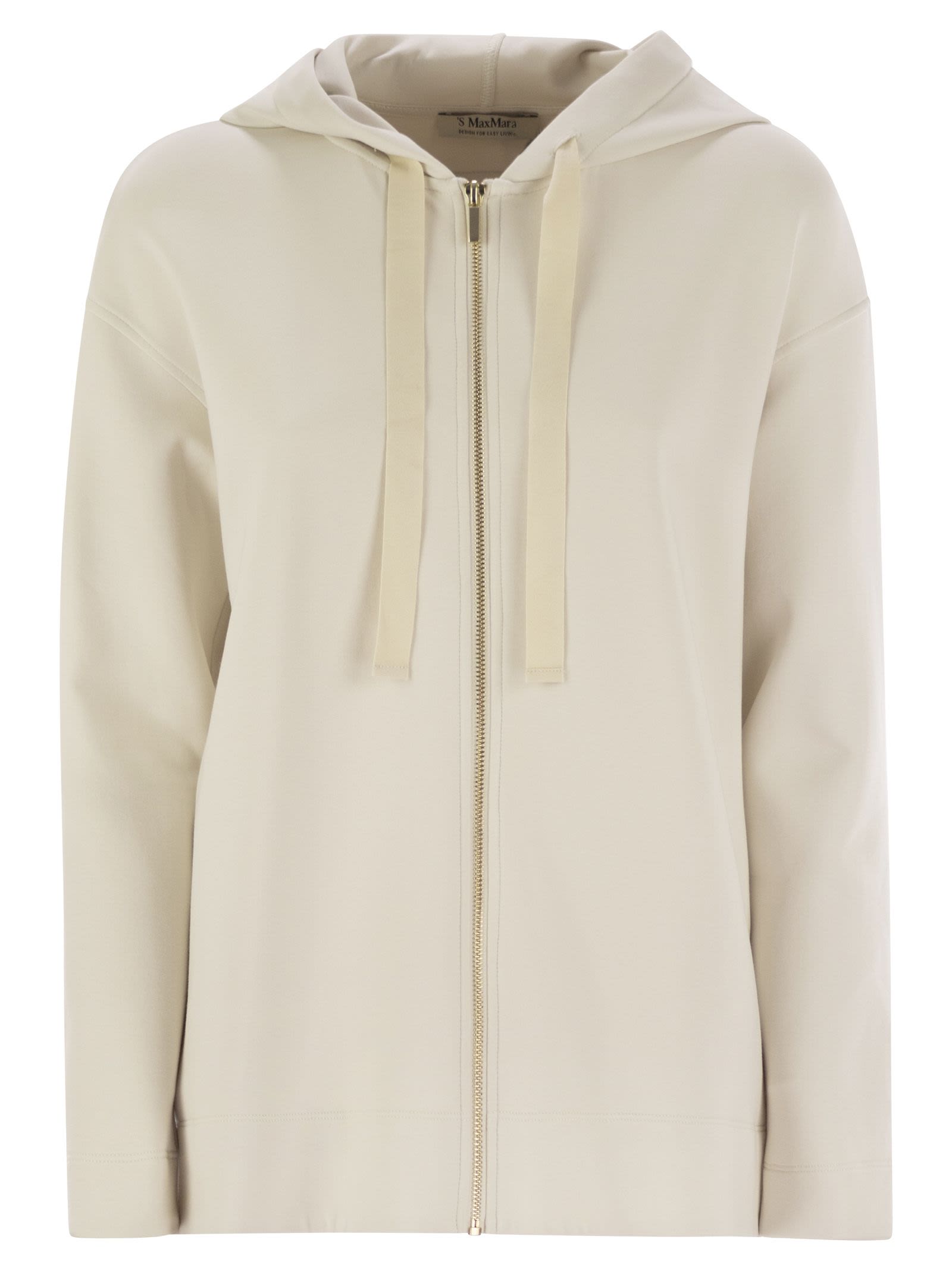 Sweatshirt with drawstring hood, made of scuba jersey, with long sleeves and pockets inserted in the hips. The model is personalised with Max Mara maxi logo embroidered on the back. - Front zip fastening - Hood - Max logo on the back DESIGNER ID: 2519911013600 002