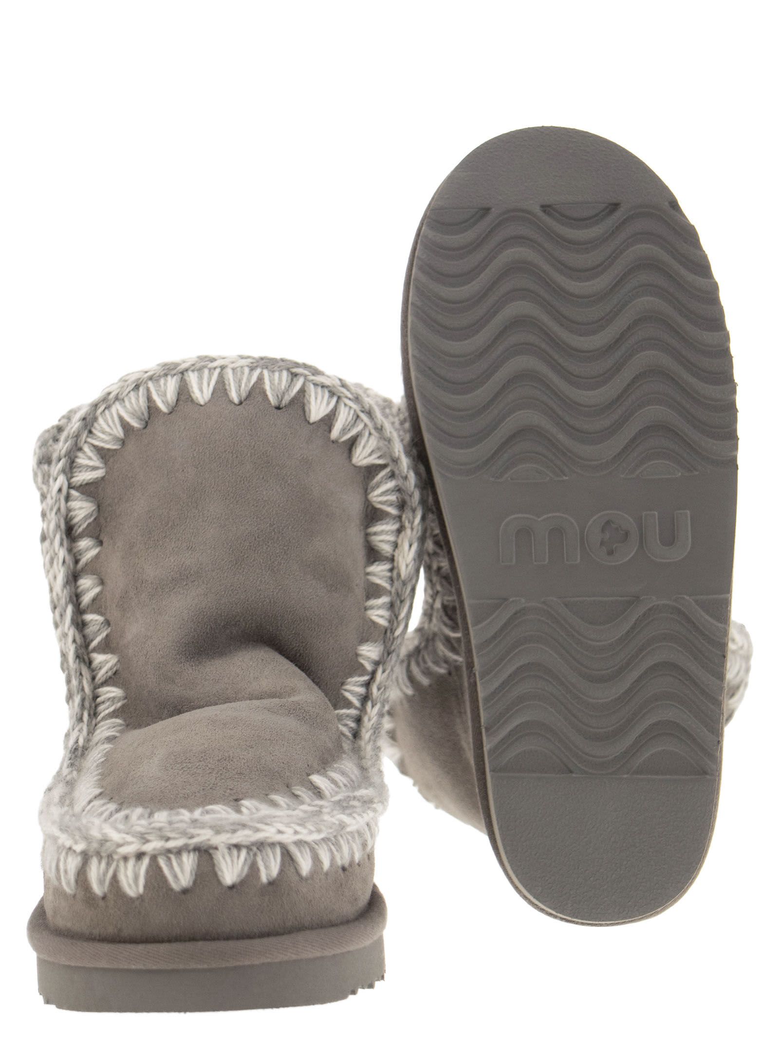 MOU's iconic Eskimo 18 boot is crafted by expert artisans from beautiful, warm double-face sheepskin, with crocheted wool seams, a reinforced heel and a durable rubber and EVA outsole. Incredibly comfortable and durable. - Height 18 cm - Regular fit DESIGNER ID: MU.FW101001A NGRE