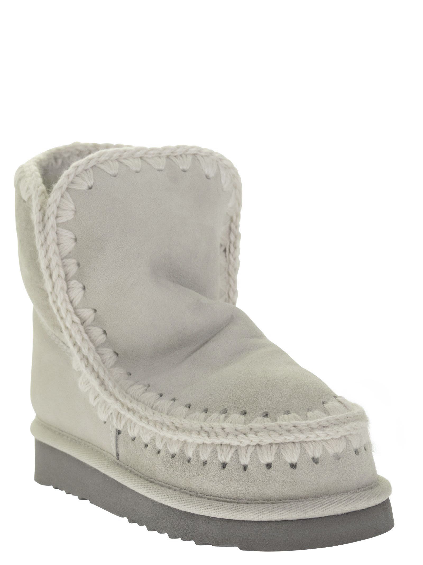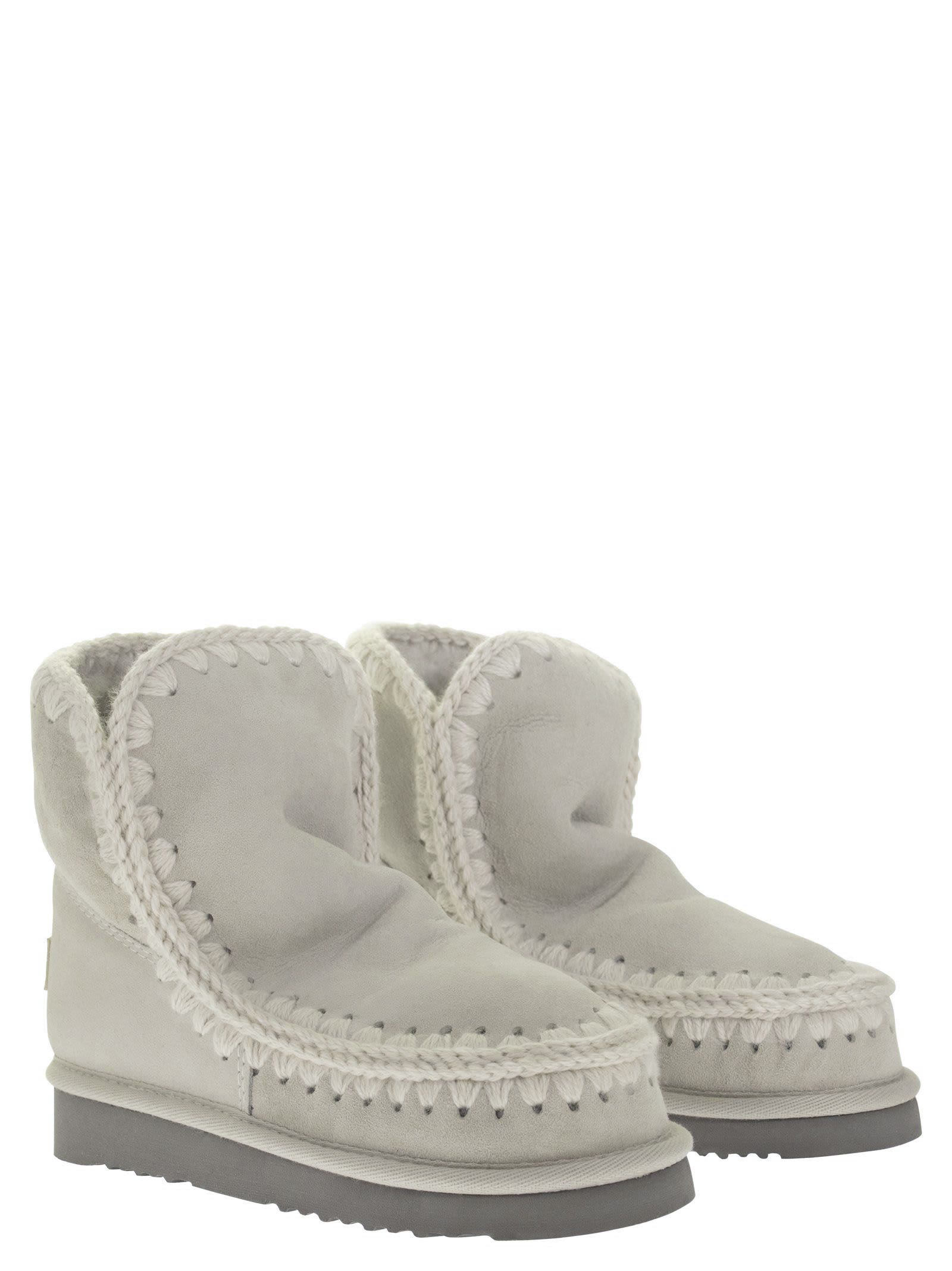 MOU's iconic Eskimo 18 boot is crafted by expert artisans from beautiful, warm double-face sheepskin, with crocheted wool seams, a reinforced heel and a durable rubber and EVA outsole. Incredibly comfortable and durable. - Height 18 cm - Regular fit DESIGNER ID: MU.FW101001A SILB