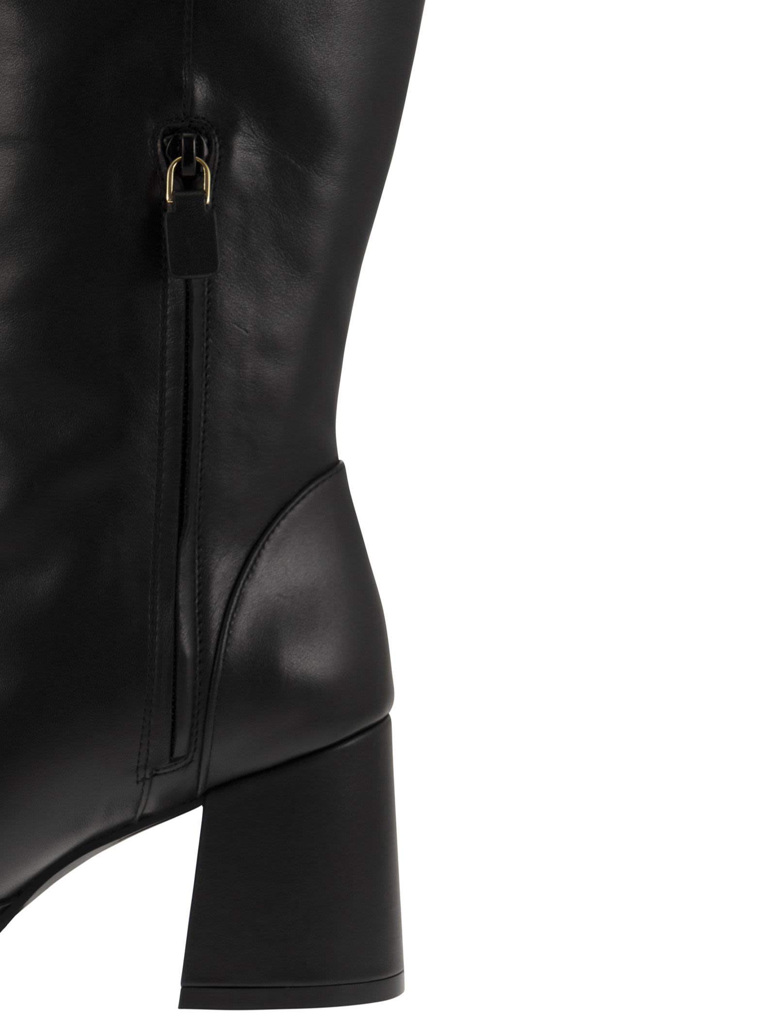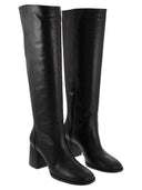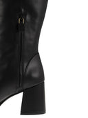 The NOLA ZIP boot is a resolutely refined model, characterised by modern details that pay tribute to the skilful craftsmanship of artisans in Spain. It features a 70 mm flare block heel, built on a wider base for extra support, and a bevelled square toe that lends elegance to the look. - Below-the-knee boot - Flare block heel - Beveled square toe - Half side zip DESIGNER ID: SG682 BLK