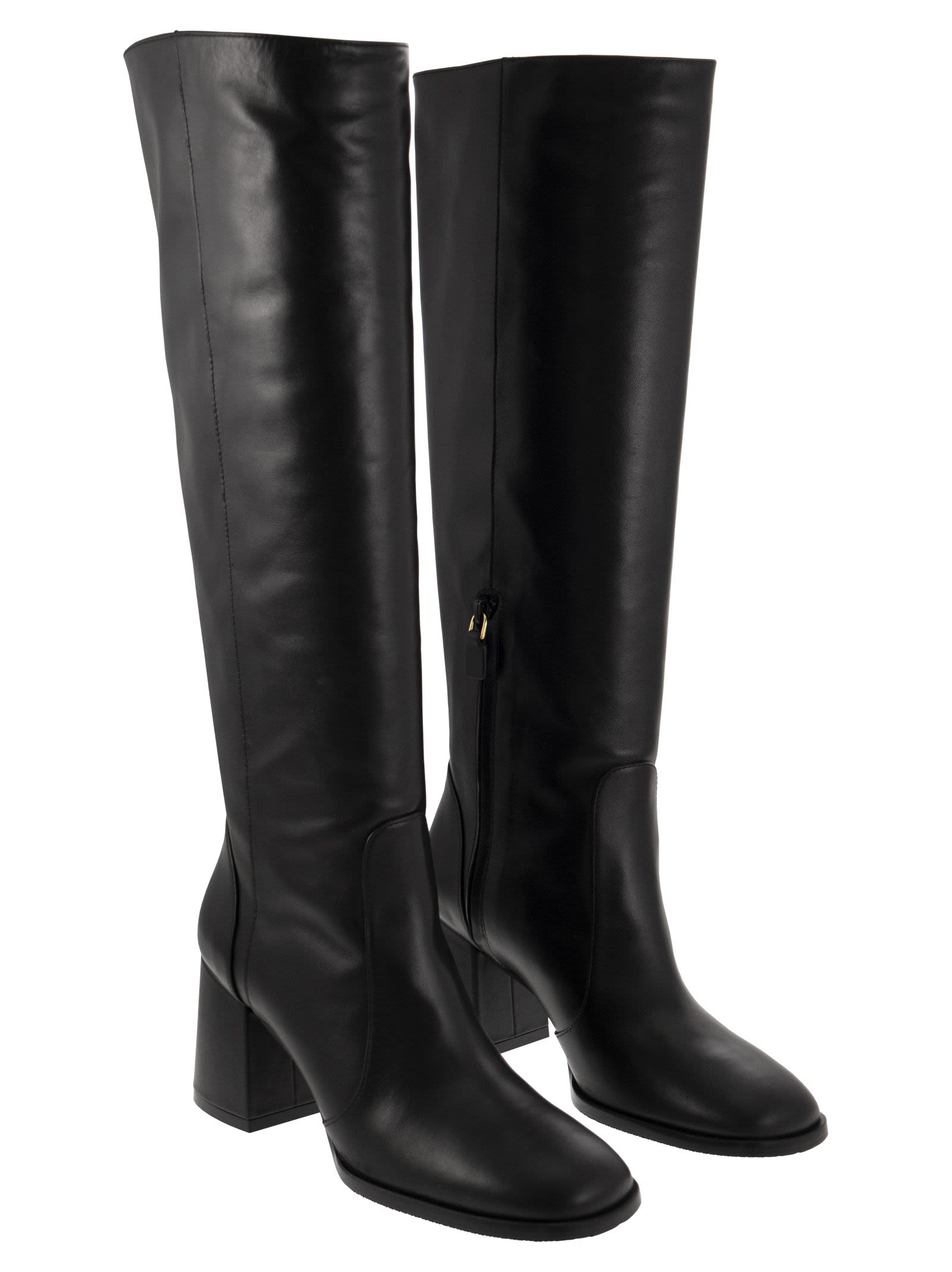 Modern luxury footwear—sleek silhouettes and signature over-the-knee boots with impeccable fit.