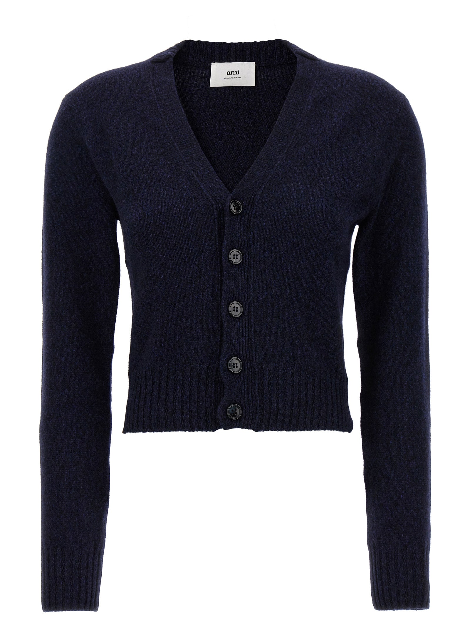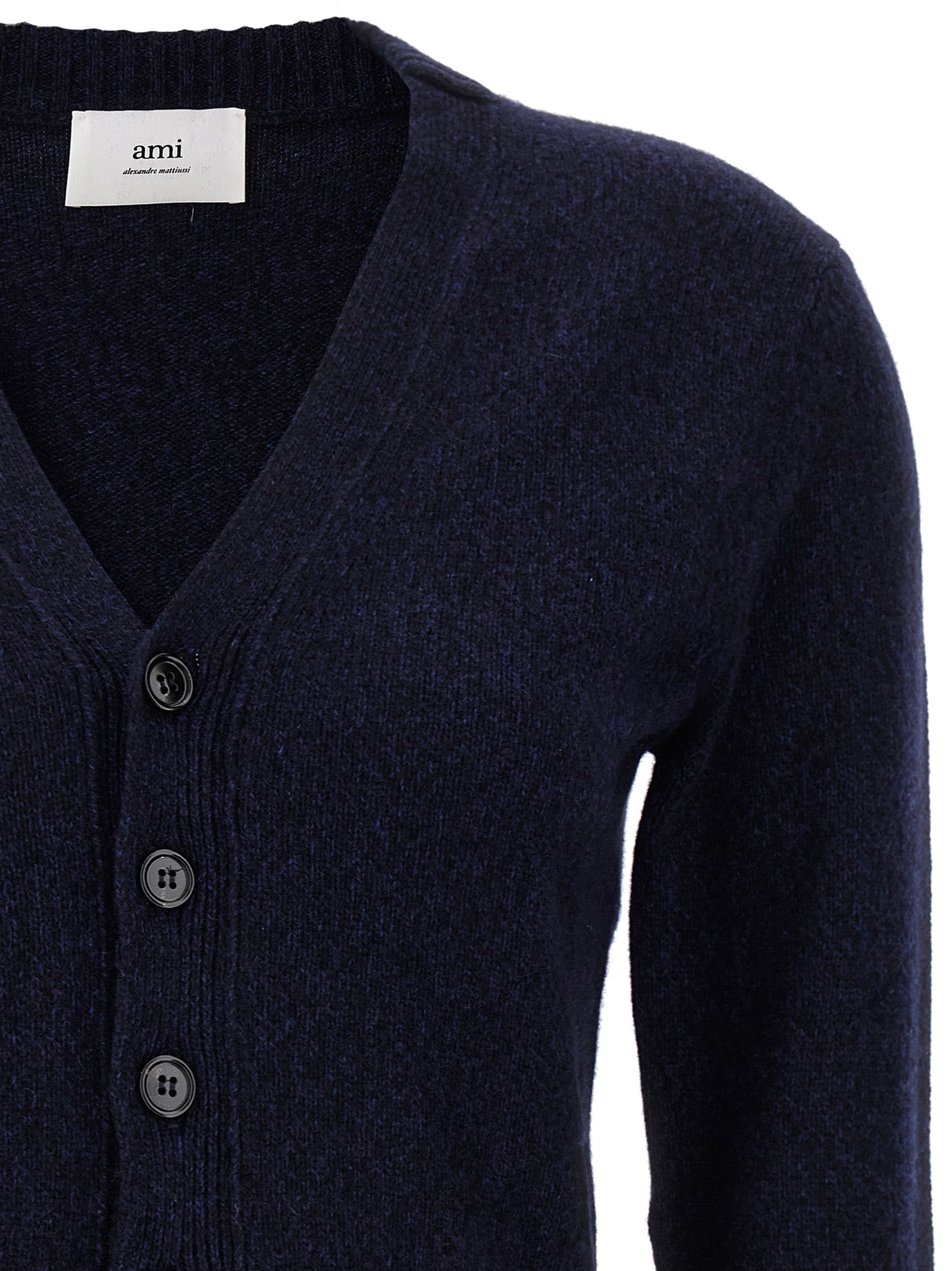 'Ami De Coeur' cashmere and wool cardigan with tone-on-tone embroidered logo, button closure, long cuffed sleeves.