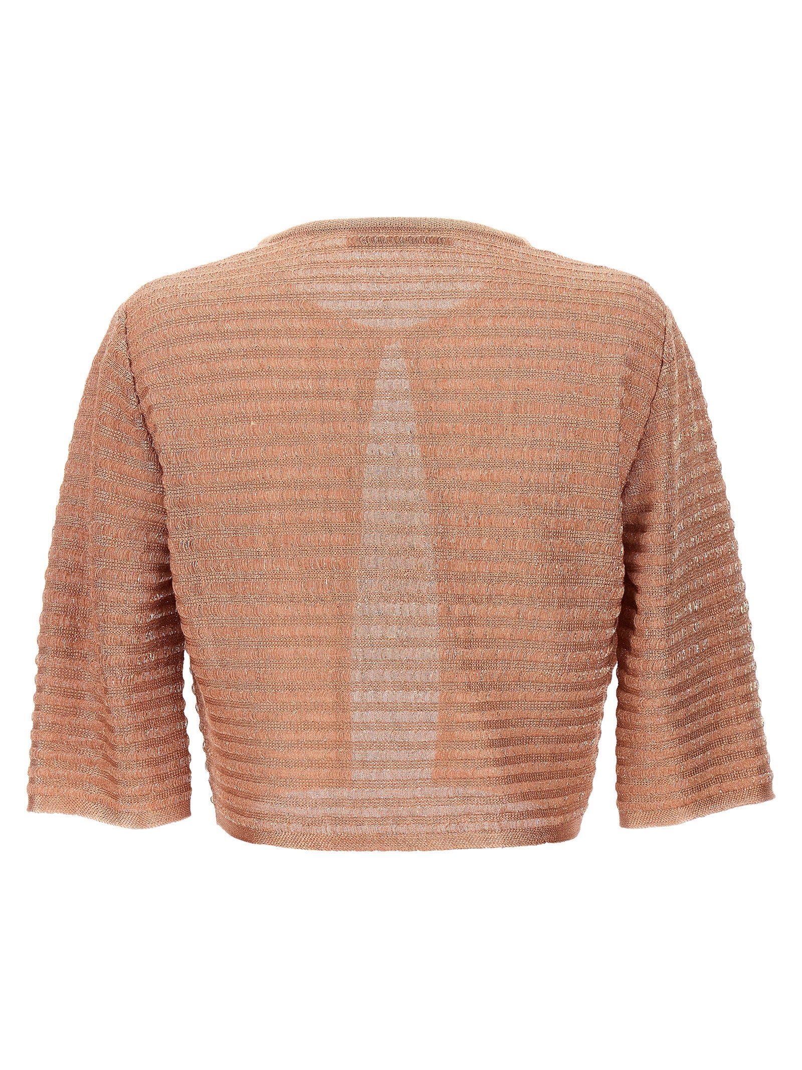 'Linda Carrara' bolero cardigan in lurex viscose blend, crew neck with hook, 3/4 sleeves.