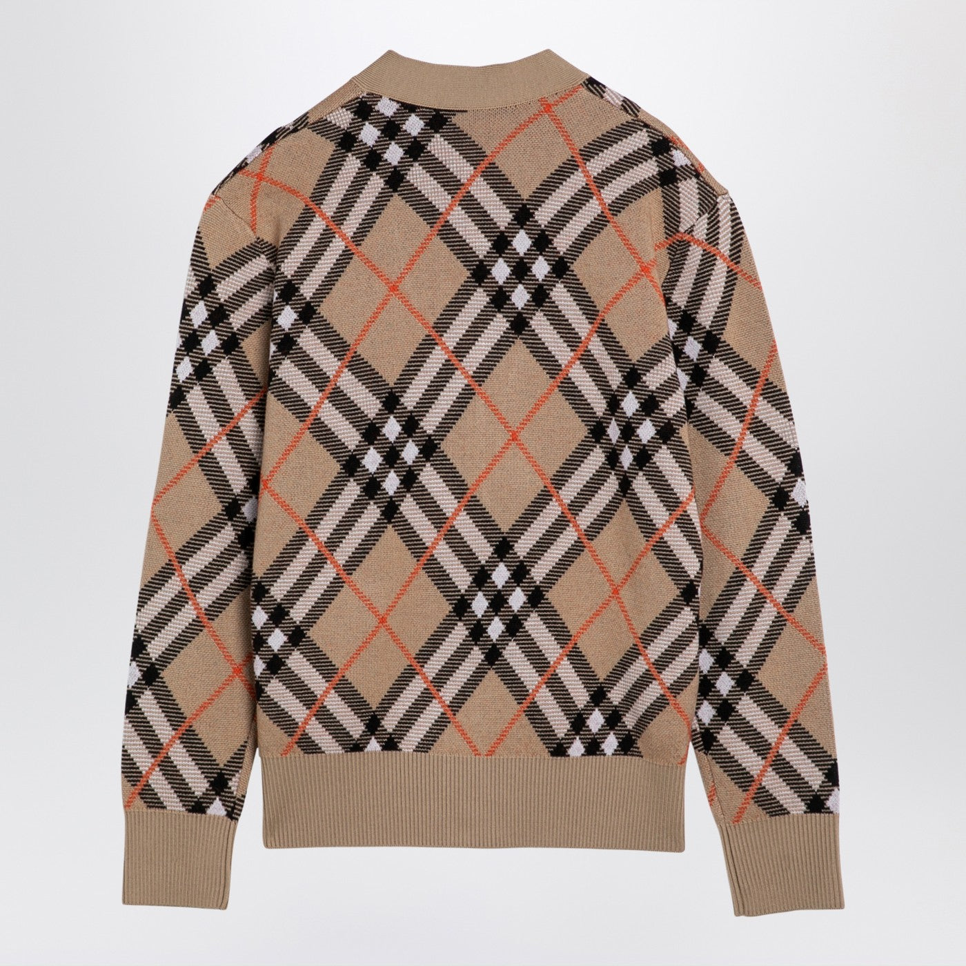 Cardigan by Burberry in wool and mohair blend featuring Check pattern, V-neck, a front button placket, long sleeves, and ribbed cuffs and hem.