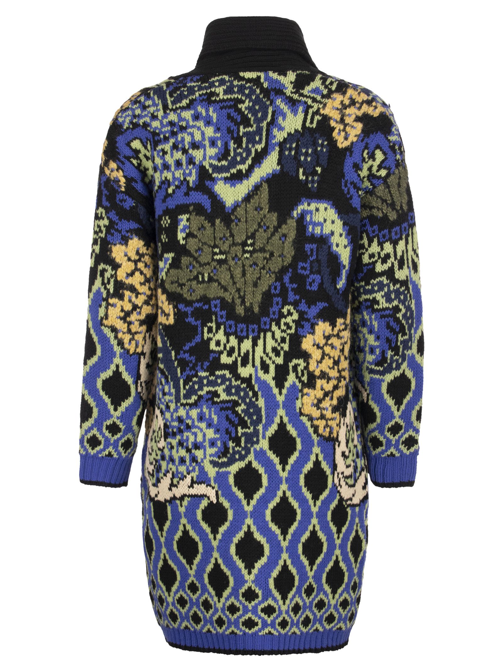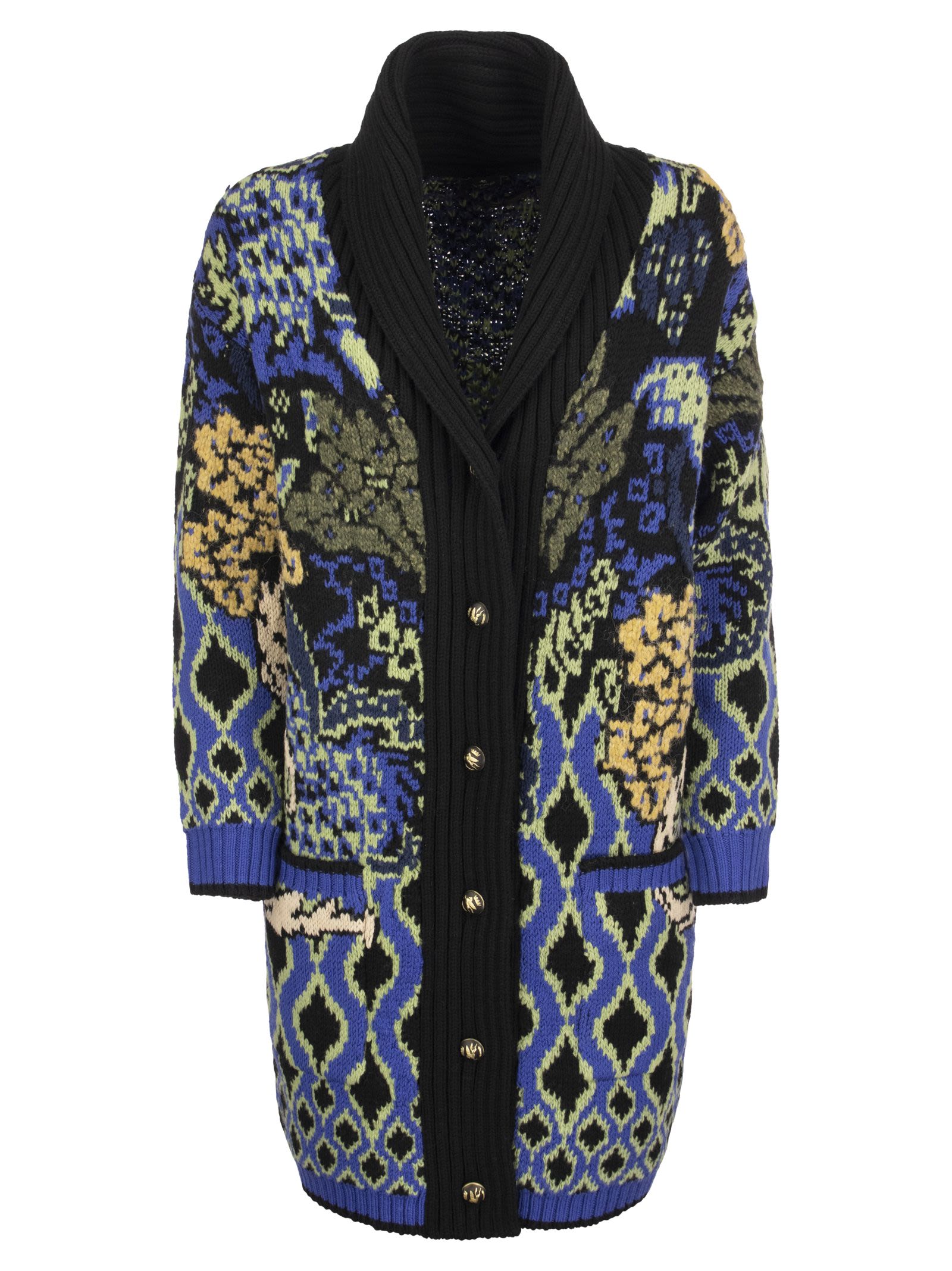 Wool and alpaca knit robe-style cardigan, decorated with carpet floral motifs. The garment features two low pockets, a ribbed collar, hem and cuffs, and is embellished with logo buttons. - Regular fit - V-neck - Front pockets DESIGNER ID: 13753 9142 0001
