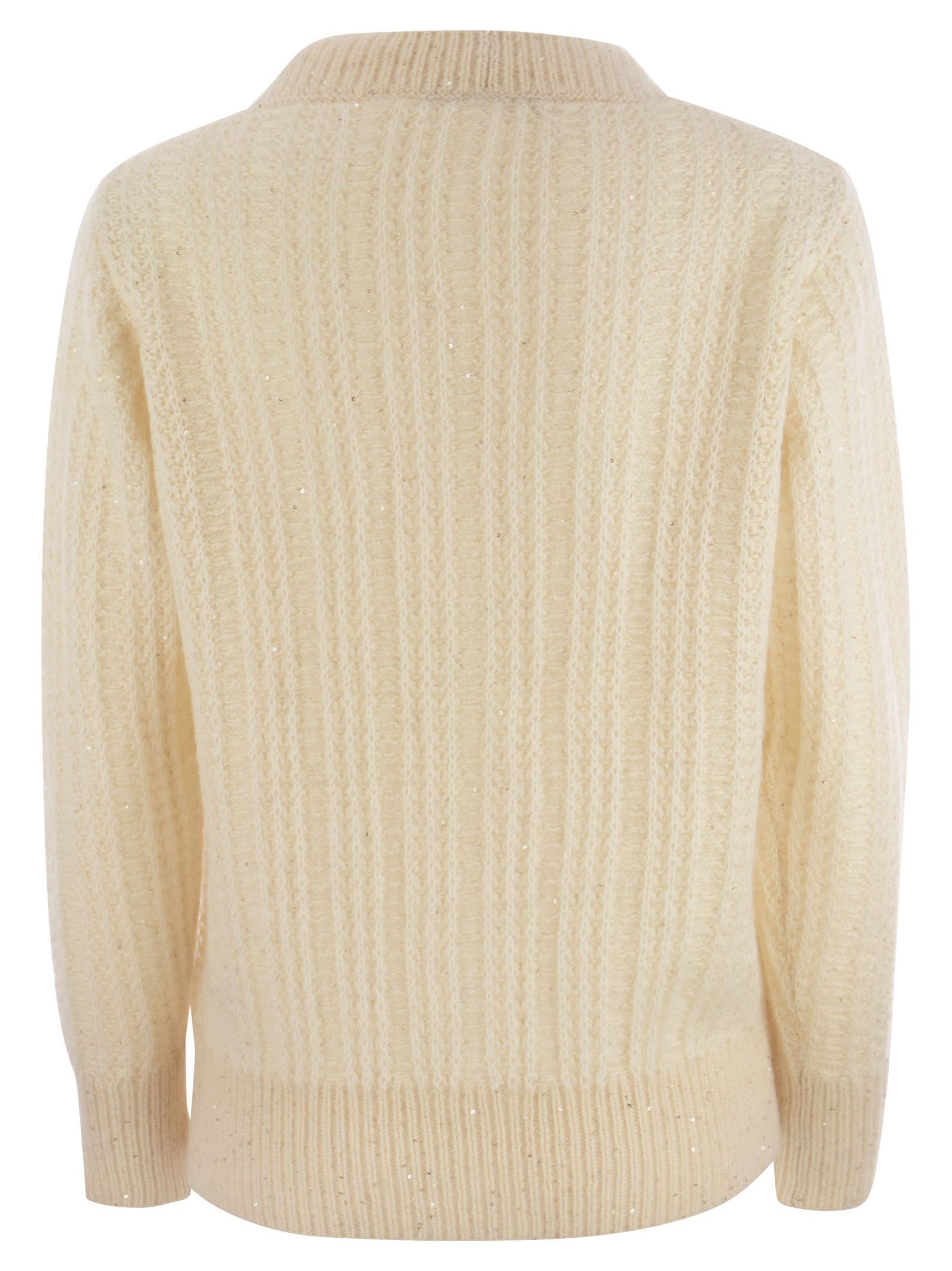 Refined cardigan in a wool, alpaca, mohair, cashmere and ribbed silk blend. With its loose fit, it is a must-have item in every seasonal wardrobe. - Horn button fastening - Ribbed knit DESIGNER ID: MAD223F412 H805 VR1