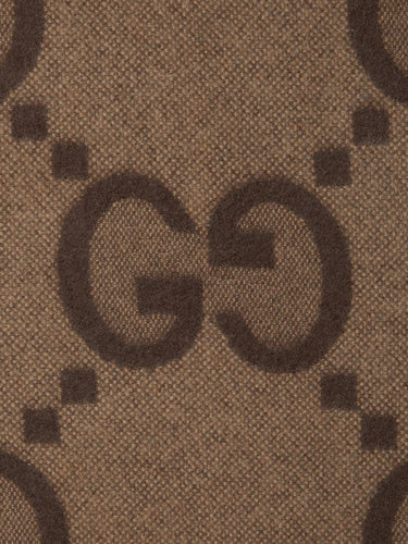 brown cashmere signature GG print dial V-neck long sleeves reversible fringed edge asymmetric hem